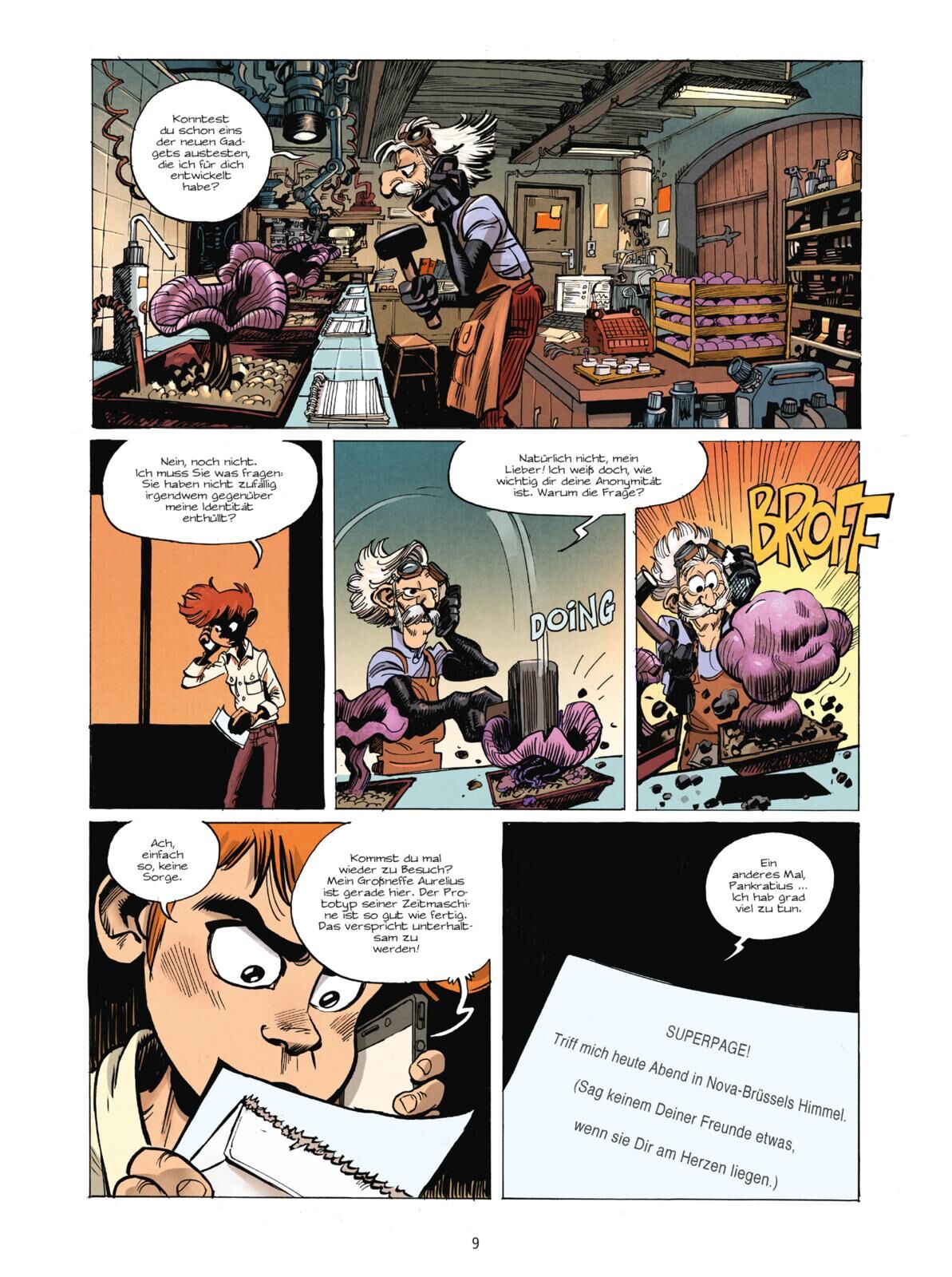 Der Superpage ist zurück Eine mysteriöse Einladung lockt Spirou zu einem geheimnisvollen Treffen auf dem Gaia-Gebäude. Doch niemand außer dem Grafen von Rummelsdorf kennt seine geheime Identität als Superpage. Gegen den Rat von Redwing (alias Pips) folgt er d...