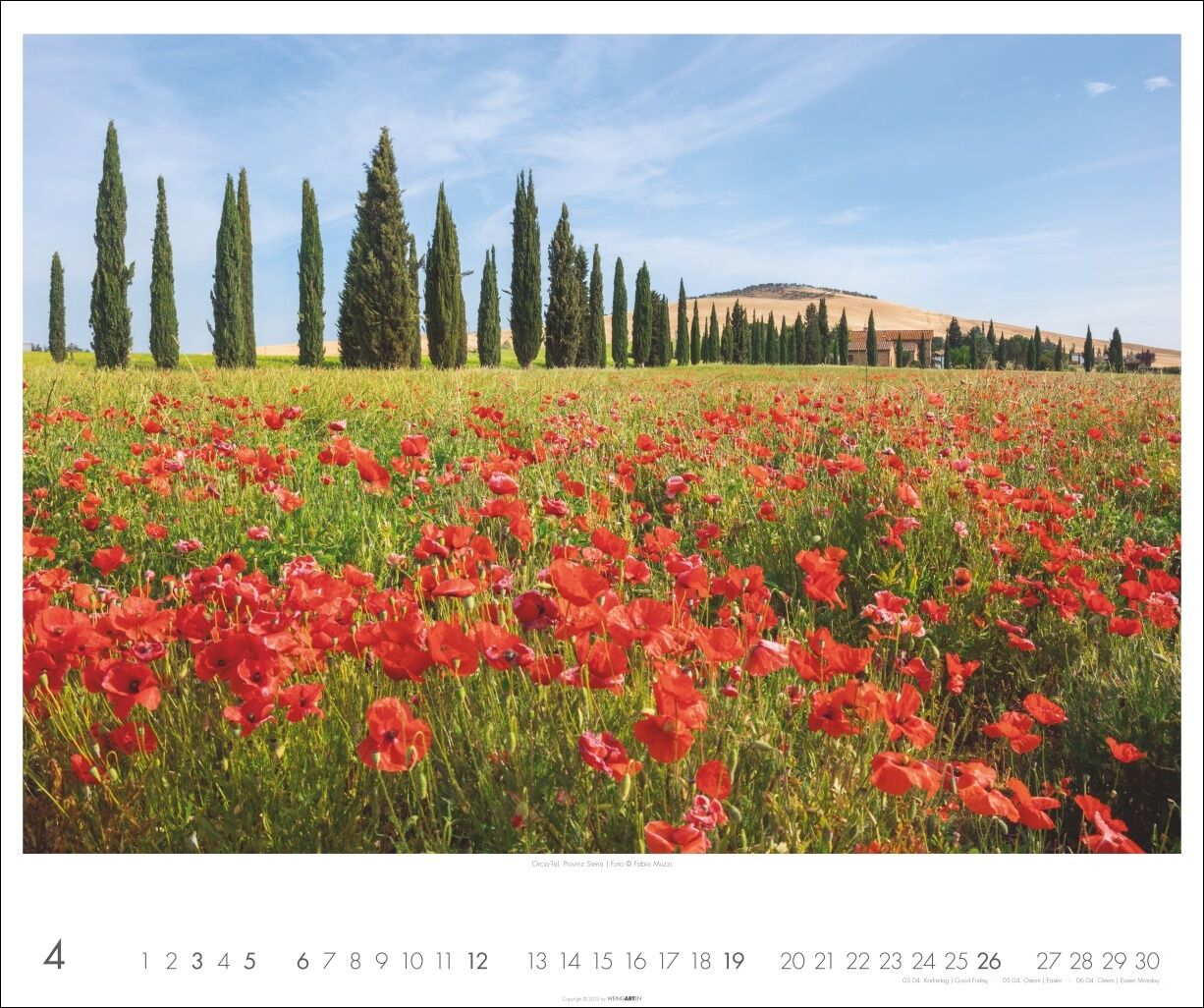 Zauberhafte Toskana vom Apennin bis zur Maremma: Großer Kalender mit sanften Hügeln, mediterranen Küstenlandschaften und diesem ganz besonderen Licht - Das ganze Jahr Urlaub zuhause: Fotokalender im Format 55 x 46 cm mit den schönsten Städten, beliebten Sehe...