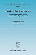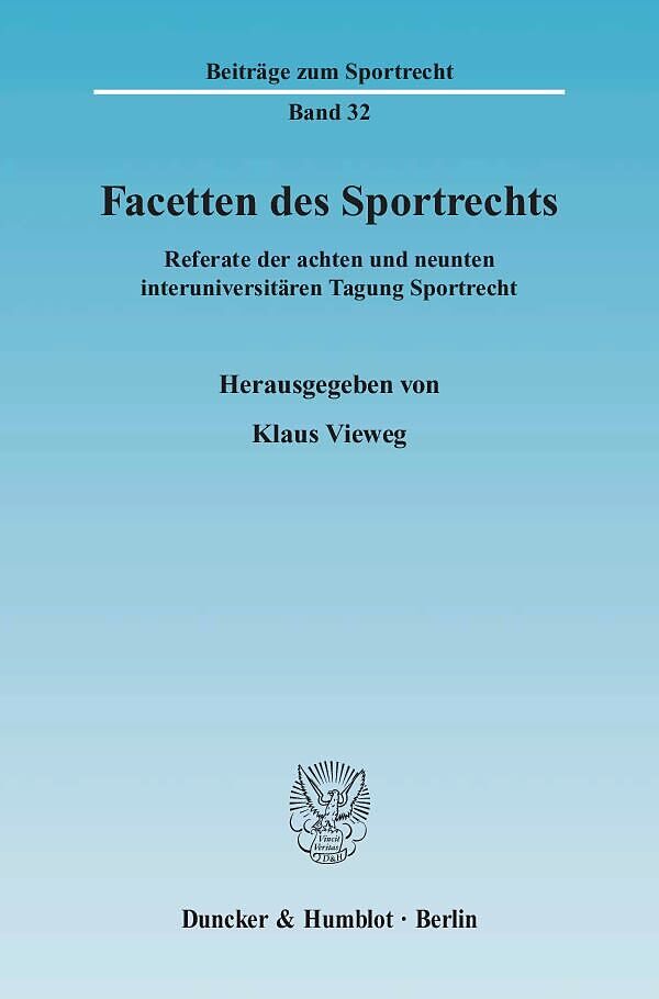 Mittlerweile sind die Interuniversitären Tagungen Sportrecht zu einer in der Fachwelt beachteten Tradition geworden. Der Band enthält die für die Veröffentlichung durchgesehenen und teilweise ergänzten Vorträge der letzten beiden Tagungen, die am 11. und 12. M...Mittlerweile sind die Interuniversitären Tagungen Sportrecht zu einer in der Fachwelt beachteten Tradition geworden. Der Band enthält die für die Veröffentlichung durchgesehenen und teilweise ergänzten Vorträge der letzten beiden Tagungen, die am 11. und 12. Mai 2007 in Rauischholzhausen sowie am 27. und 28. Juni 2008 in Schloss Thurnau stattfanden. Referenten waren Privatdozenten, Doktoranden und wissenschaftliche Mitarbeiter, die im Kreis namhafter Sportrechtsexperten aus Wissenschaft und Praxis aktuelle sportrechtliche Themen behandelten. Wie schon in den Tagungsbänden "Spektrum des Sportrechts" (2003), "Perspektiven des Sportrechts" (2005) und "Prisma des Sportrechts" (2006) spiegelt die intradisziplinäre Vielfalt der Themen das unterschiedliche fachliche Interesse und Problemgespür der "jungen und jung gebliebenen Sportrechtler" wider. Das Themenspektrum ist demgemäß breit gefächert. Die Beiträge belegen, dass das Sportrecht keine völlig konsolidierte Querschnittsmaterie ist und auch nicht sein kann, sondern vielfältige Facetten aufweist. Der Bandtitel soll dies zum Ausdruck bringen.