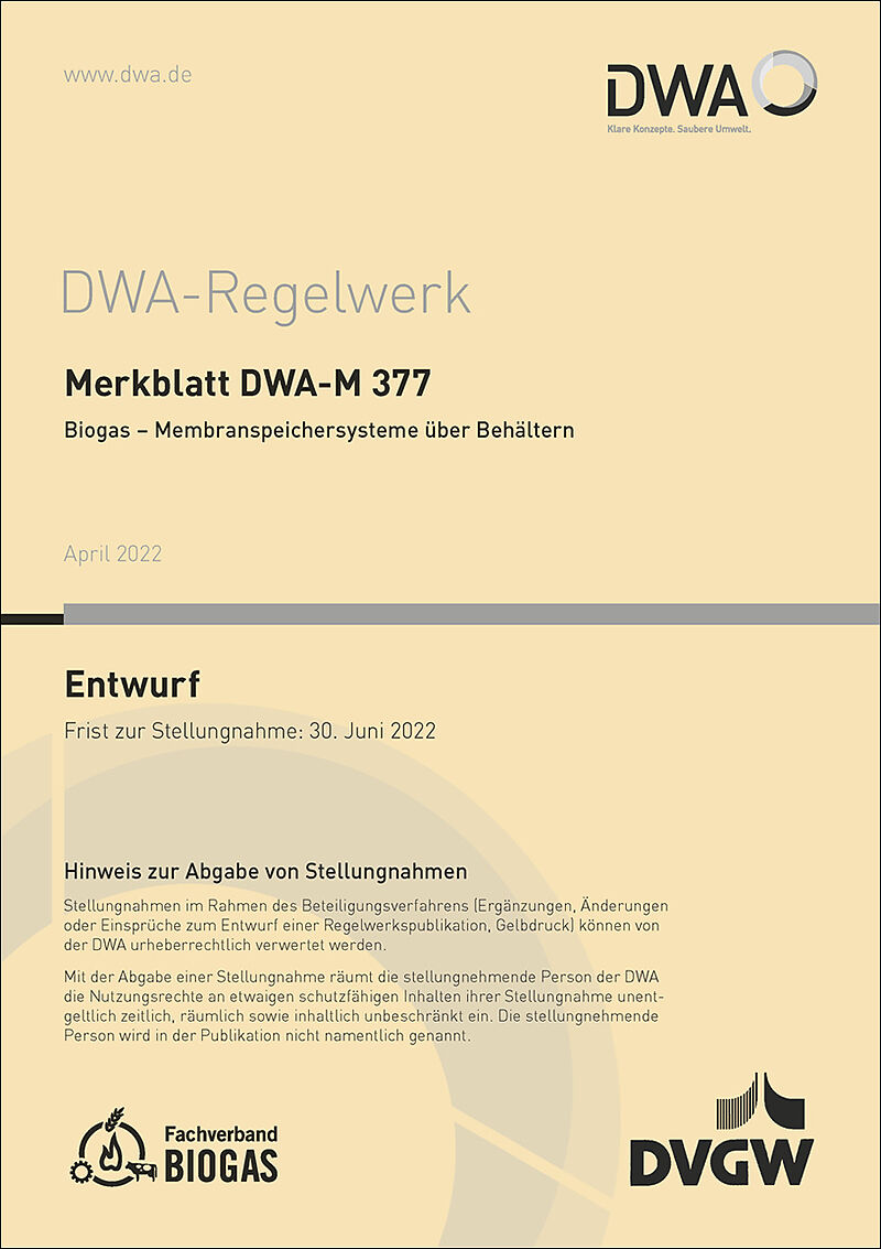 Merkblatt DWA-M 377 Biogas - Membranspeichersysteme über Behältern (Entwurf)