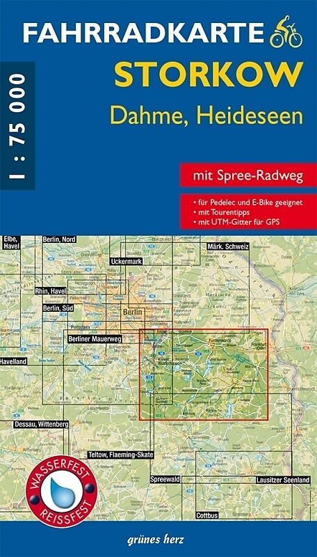 Die Fahrradkarte Storkow, Dahme, Heideseen wurde vom Verlag grünes herz in enger Zusammenarbeit mit der Touristinformation Burg Storkow und weiteren Tourismusvereinen der Region erarbeitet. Die Seenlandschaft zwischen Storkow und Bad Saarow bildet das Zentrum ...