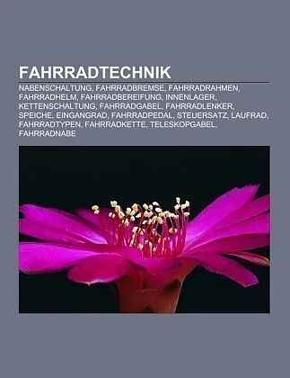 Quelle: Wikipedia. Seiten: 125. Kapitel: Nabenschaltung, Fahrradbremse, Fahrradrahmen, Fahrradhelm, Fahrradbereifung, Innenlager, Kettenschaltung, Fahrradgabel, Fahrradlenker, Speiche, Eingangrad, Fahrradpedal, Steuersatz, Laufrad, Fahrradtypen, Fahrradkette, ...