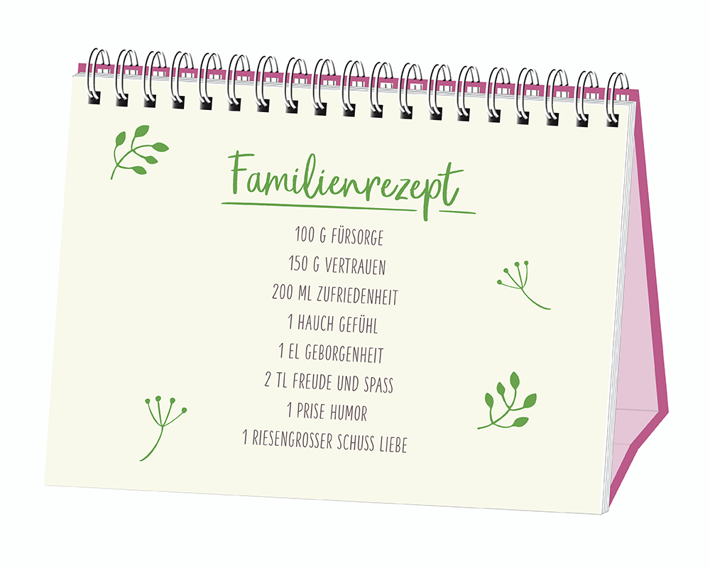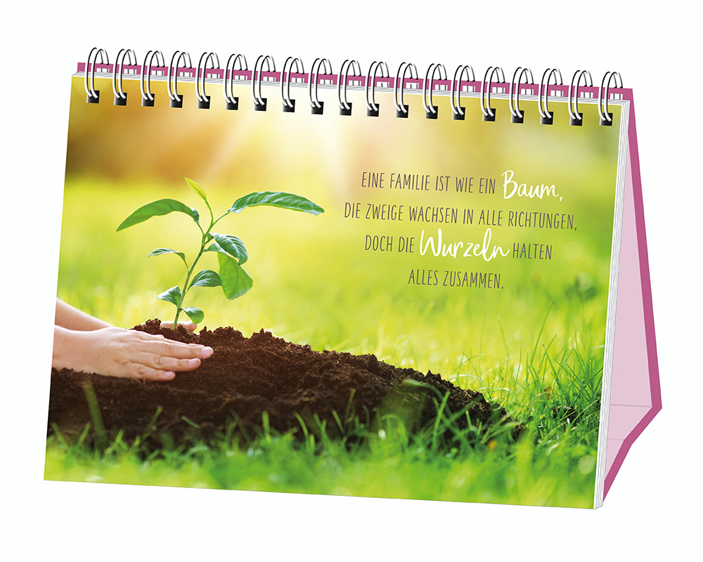 Dieses Spiralbuch ist ein kleiner Schatz für die ganze Familie! Eine Familie ist wie ein Baum, die Zweige wachsen in alle Richtungen, doch die Wurzeln halten alles zusammen." Dekorativer Spiralaufsteller Die Welt ist schön, weil wir mit drauf sind dieses Buch...