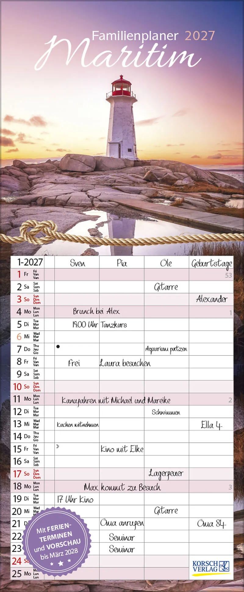 Korsch Familienkalender - Produktmerkmale Übersichtlicher Familienplaner mit 4 großen Spalten; sehr stabile Rückwand ; 19 x 46 cm Terminkalender mit viel Platz für Eintragungen, ohne störende Bilder in den Spalten leichte Beschreibbarkeit , auch mit Bunt- und...