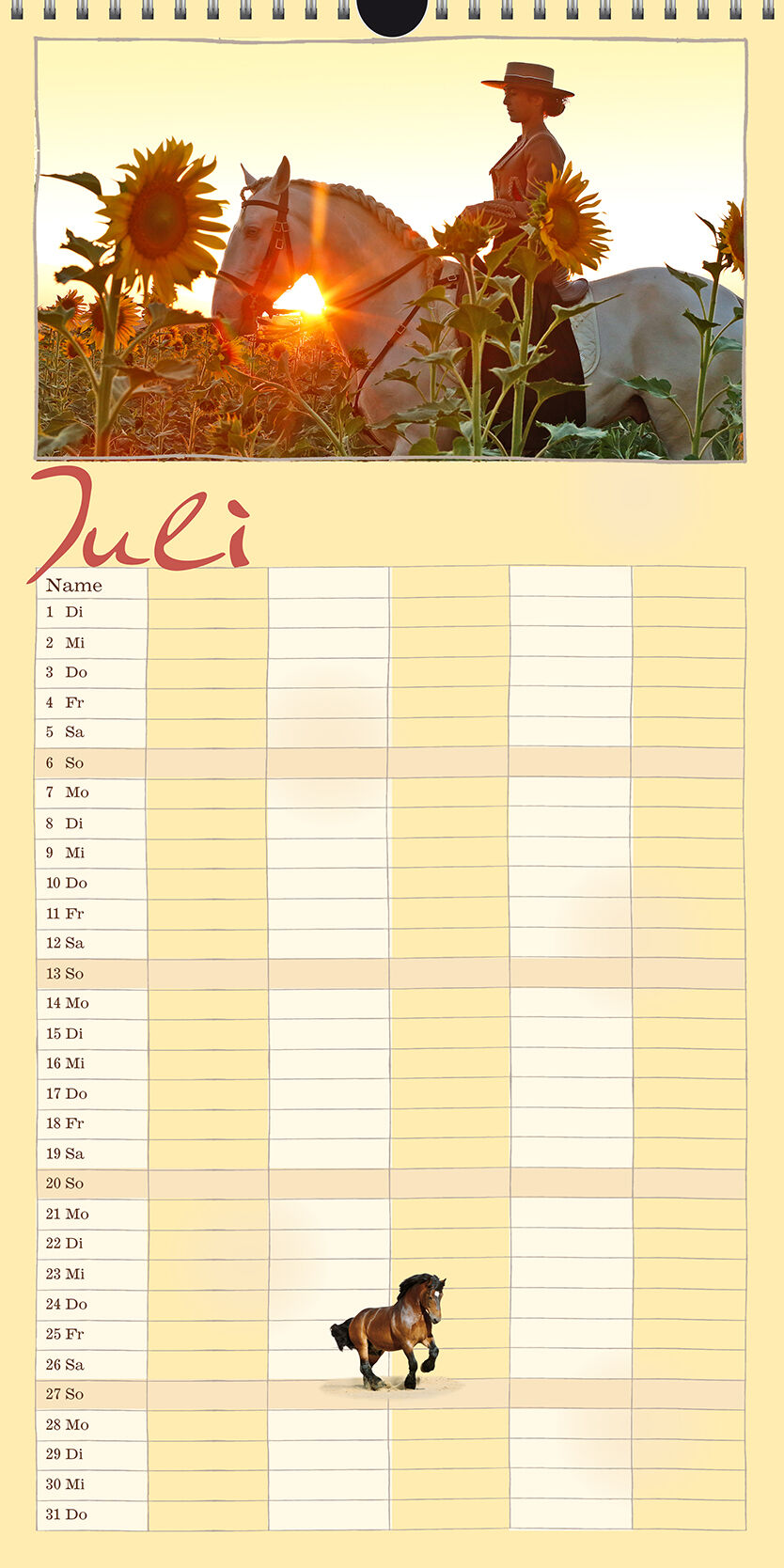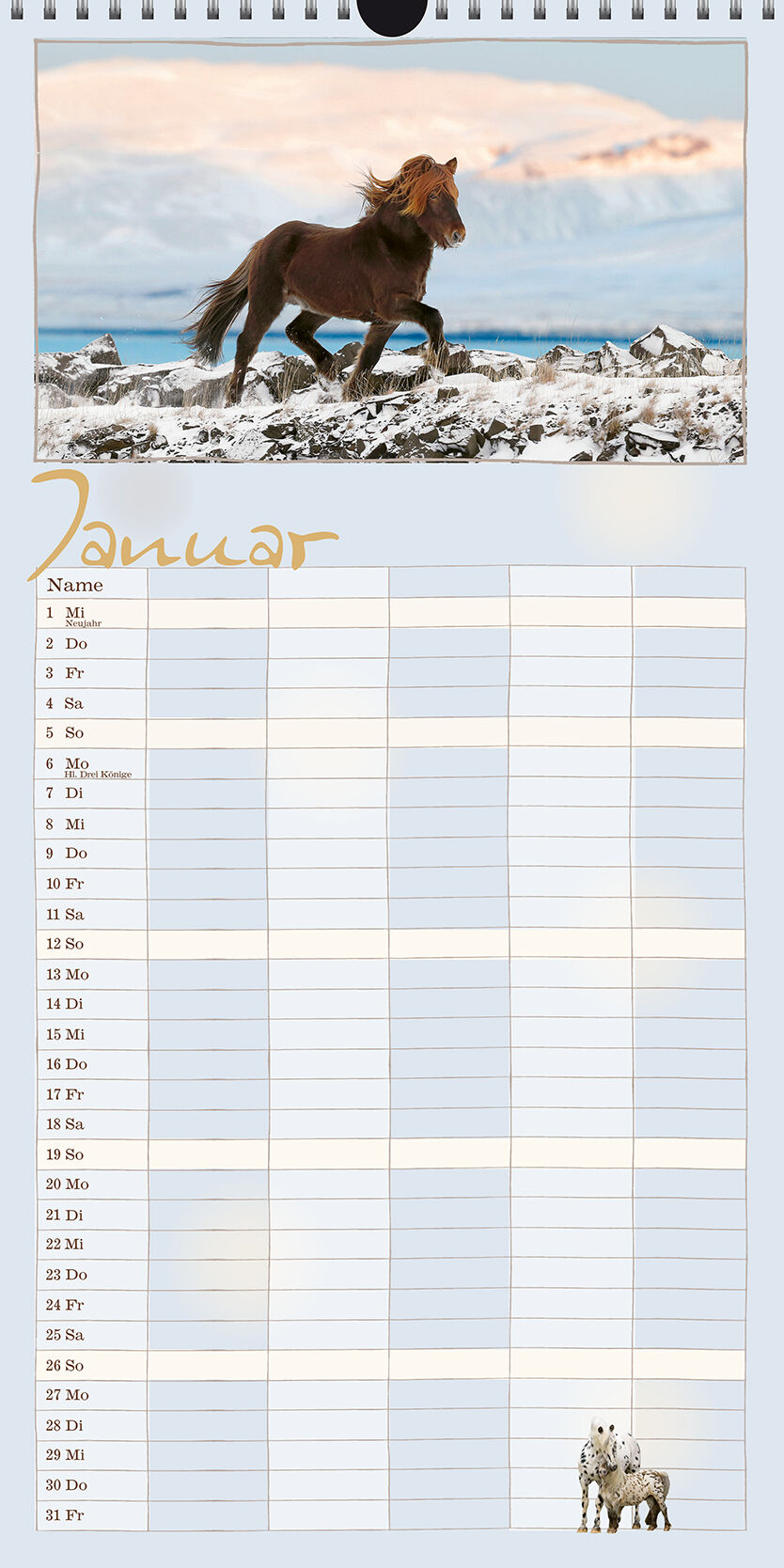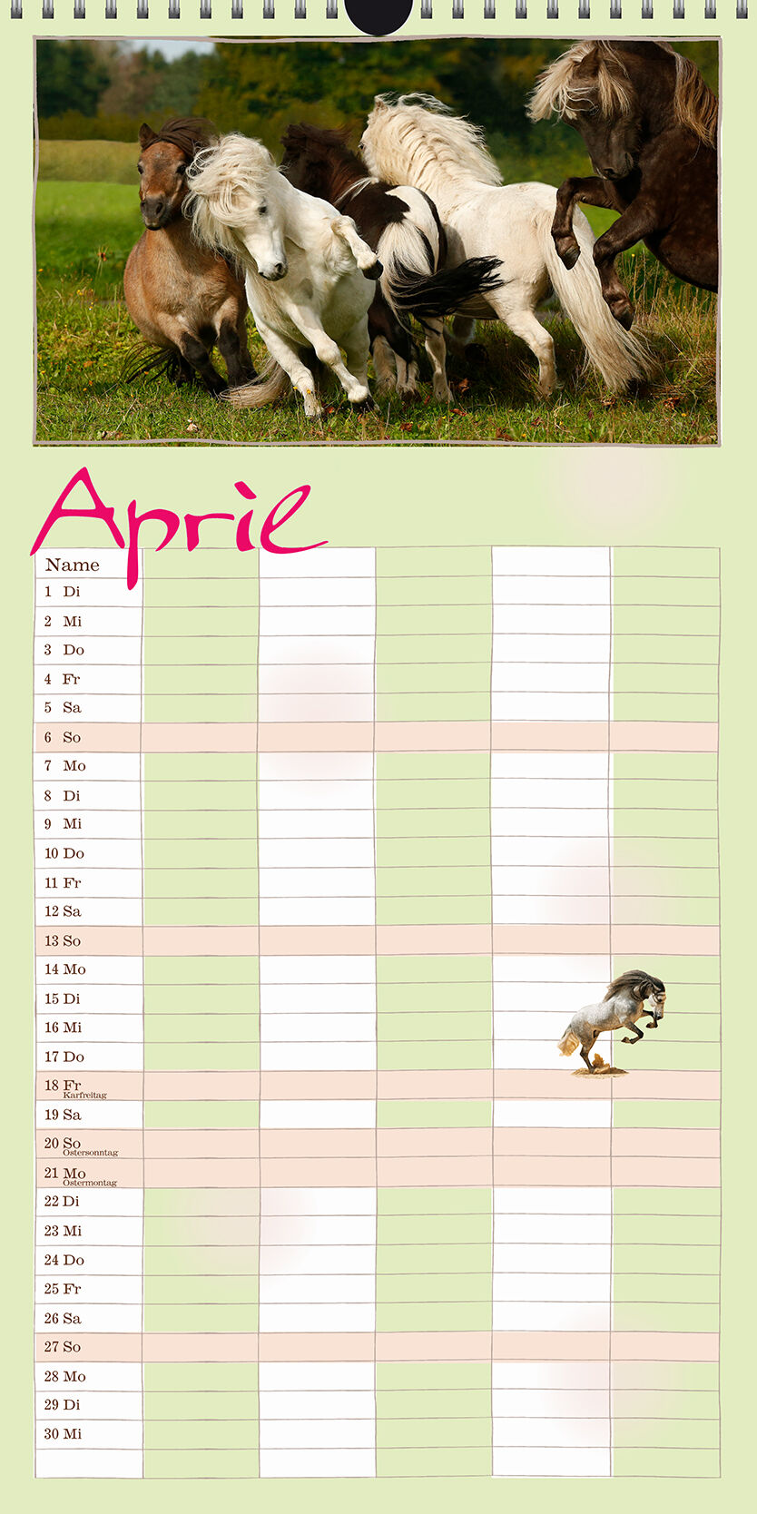 Der Terminkalender für die ganze Familie Dieser Kalender bietet viel Platz für alle möglichen Notizen ein Terminkalender für die ganze Familie! Er ist auch zum Träumen gemacht, zum Planen von vielen Dingen, Terminen und Aktivitäten nicht nur rund um das Pferd....