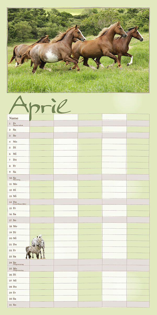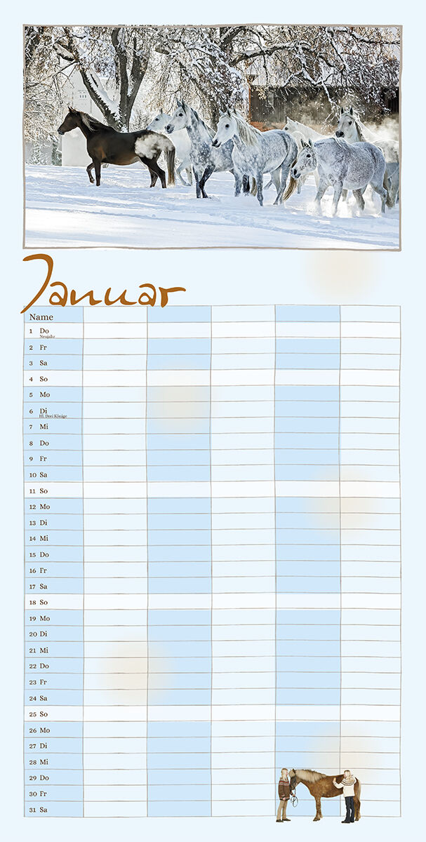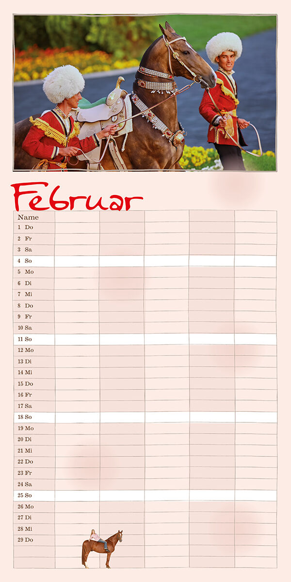 Der Terminkalender für die ganze Familie Dieser Kalender bietet viel Platz für alle möglichen Notizen ein Terminkalender für die ganze Familie! Er ist auch zum Träumen gemacht, zum Planen von vielen Dingen, Terminen und Aktivitäten nicht nur rund um das Pferd....