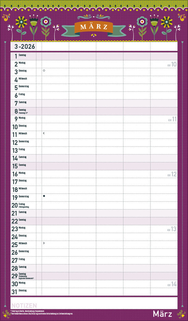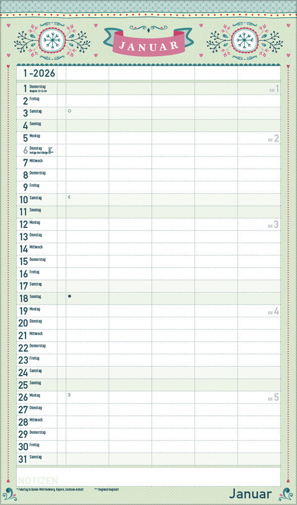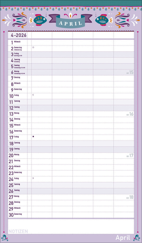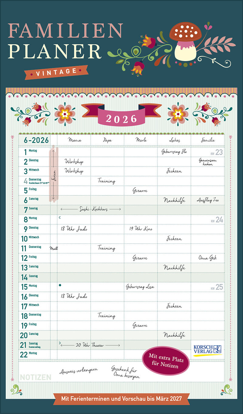 Korsch Familienkalender - Produktmerkmale Übersichtlicher Familienplaner für bis zu 5 Personen; sehr stabile Rückwand Praktische Zusatzspalte für Ferien, Müll und weitere Aktivitäten Terminplaner ohne störende Bilder in den Spalten Viel Platz für Eintragungen...