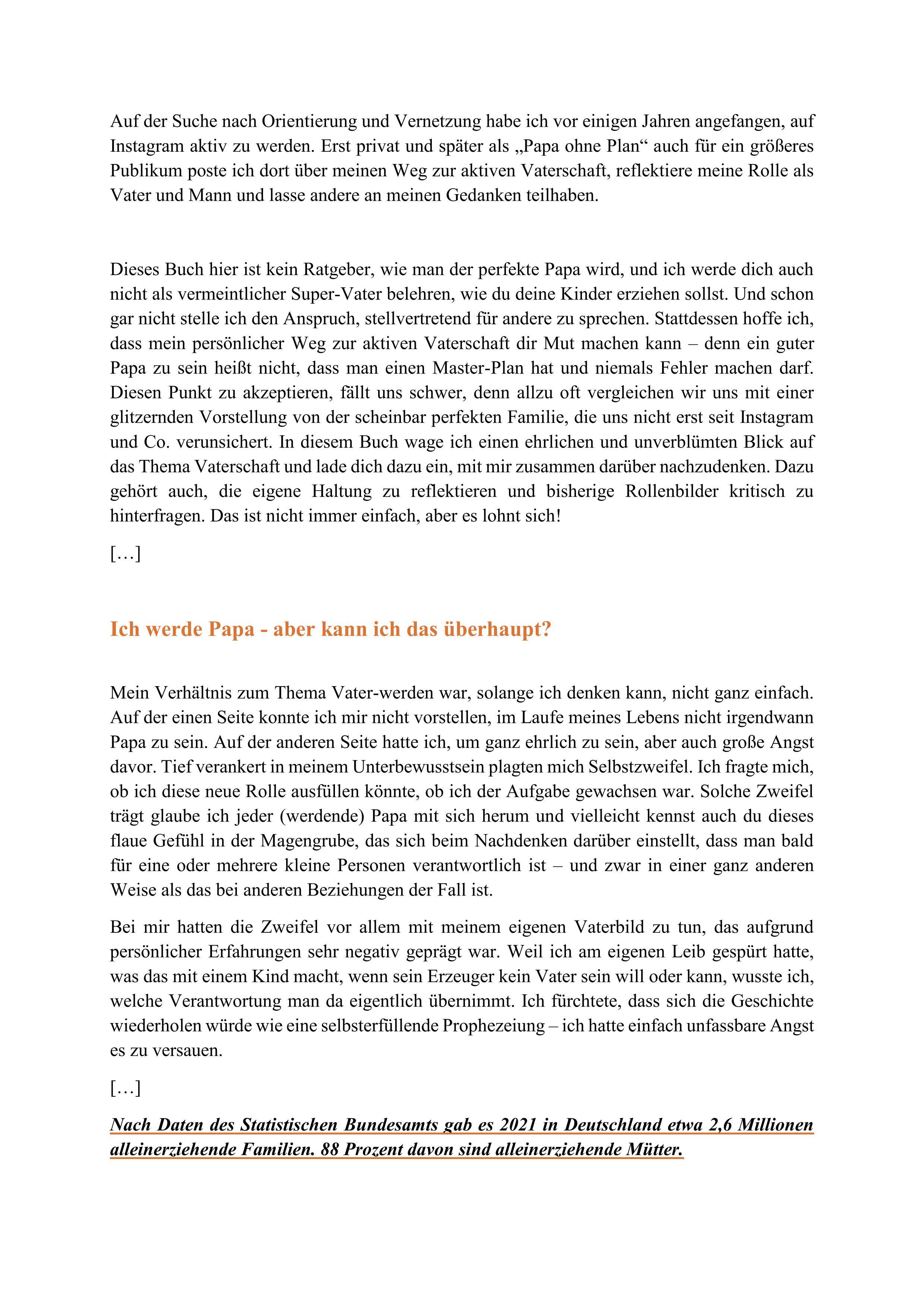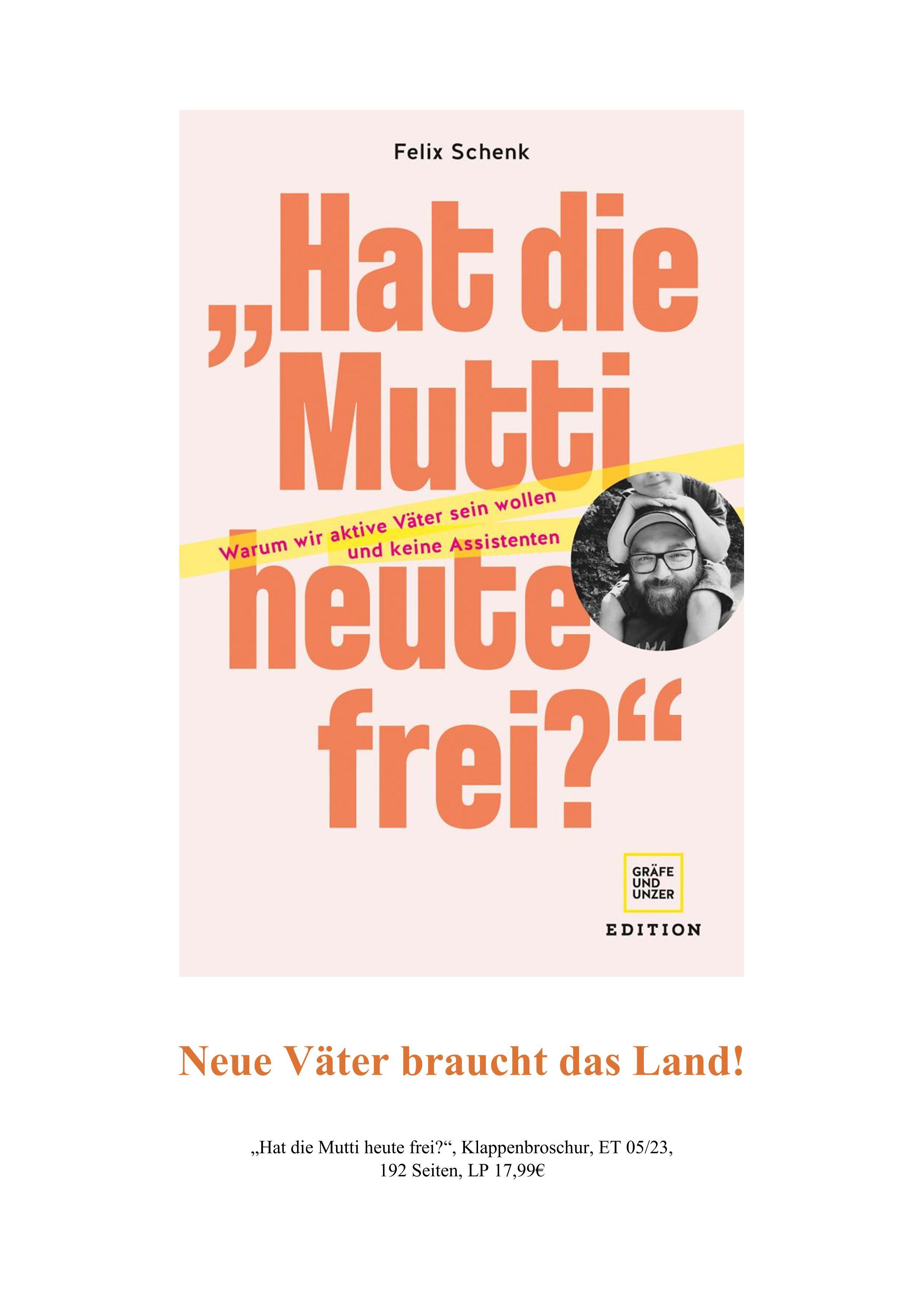 Humorvoll und provokant hinterfragt Felix Schenk veraltete Rollenbilder, stellt Männlichkeitsideale in Frage und sucht einen neuen Weg zur aktiven Vaterschaft. Wer im Alltag als Vater mit seinen Kindern unterwegs ist, wird oft schief angeschaut: Der muss wohl ...