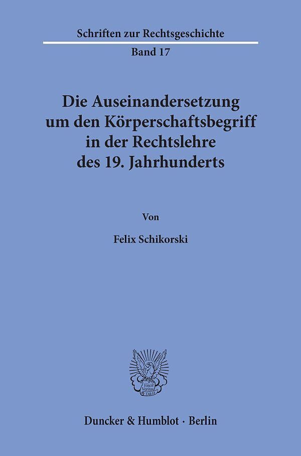 Die Auseinandersetzung um den Körperschaftsbegriff in der Rechtslehre des 19. Jahrhunderts.