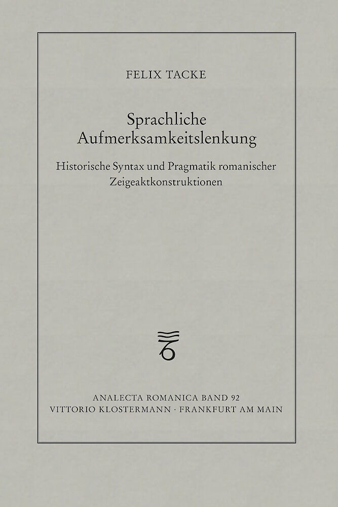 Aufmerksamkeitslenkung, vor allem die Herstellung gemeinsamer Aufmerksamkeit, stellt eine der wichtigsten kommunikativen Grundfunktionen dar. Die romanischen Sprachen besitzen zu diesem Zweck eine besonders faszinierende deiktische Ausdruckskategorie: "Zeigeak...