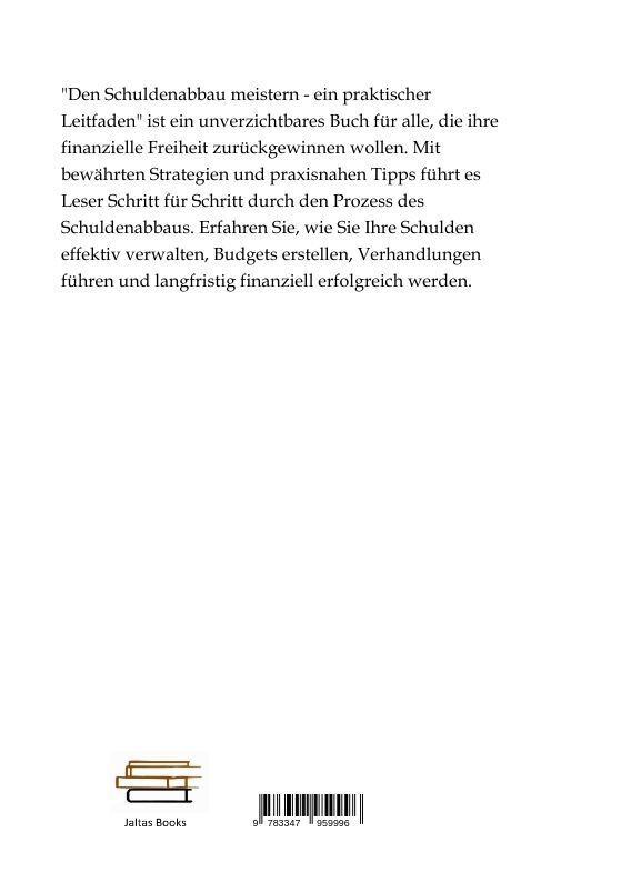 "Den Schuldenabbau meistern - ein praktischer Leitfaden" ist ein unverzichtbares Buch für alle, die ihre finanzielle Freiheit zurückgewinnen wollen. Mit bewährten Strategien und praxisnahen Tipps führt es Leser Schritt für Schritt durch den Prozess des Schulde...