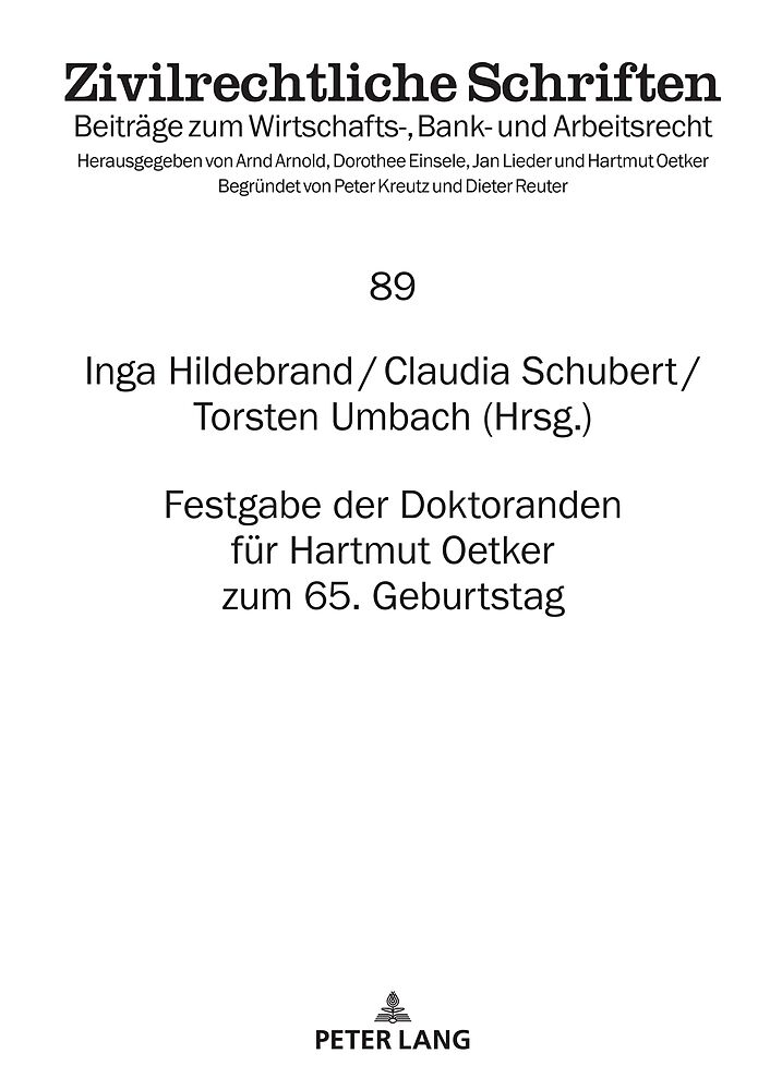 Die Festgabe der Doktorandinnen und Doktoranden ehrt Professor Dr. Hartmut Oetker als akademischen Lehrer. Die Beiträge entstammen den Tätigkeitsfeldern der Autoren und dokumentiert damit auch ihre beruflichen Werdegänge. Im März 2024 vollendet Professor Dr. ...