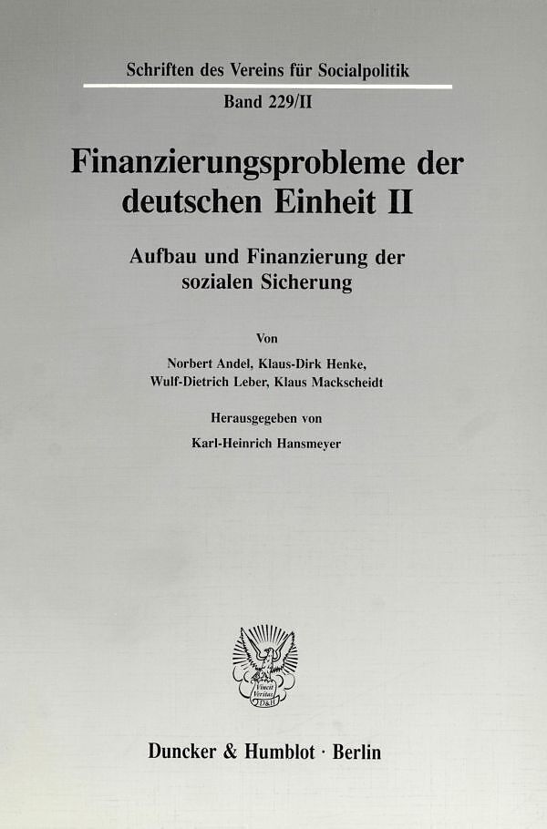 Inhalt Inhalt: K.-D. Henke / W.-D. Leber, Territoriale Erweiterung und wettbewerbliche Neuordnung der gesetzlichen Krankenversicherung (GKV) - N. Andel, Die Rentenversicherung im Prozeß der Wiedervereinigung Deutschlands - K. Mackscheidt, Die Transferaktivität...