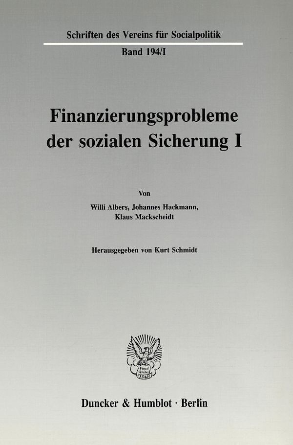 Inhalt Inhalt: W. Albers, Die Anpassung des Systems der gesetzlichen Rentenversicherung an demographische Änderungen - J. Hackmann, Freiheit und Sicherheit in Systemen der sozialen Sicherung. Zu einer Theorie sozialer Sicherungssysteme - K. Mackscheidt, Finanz...