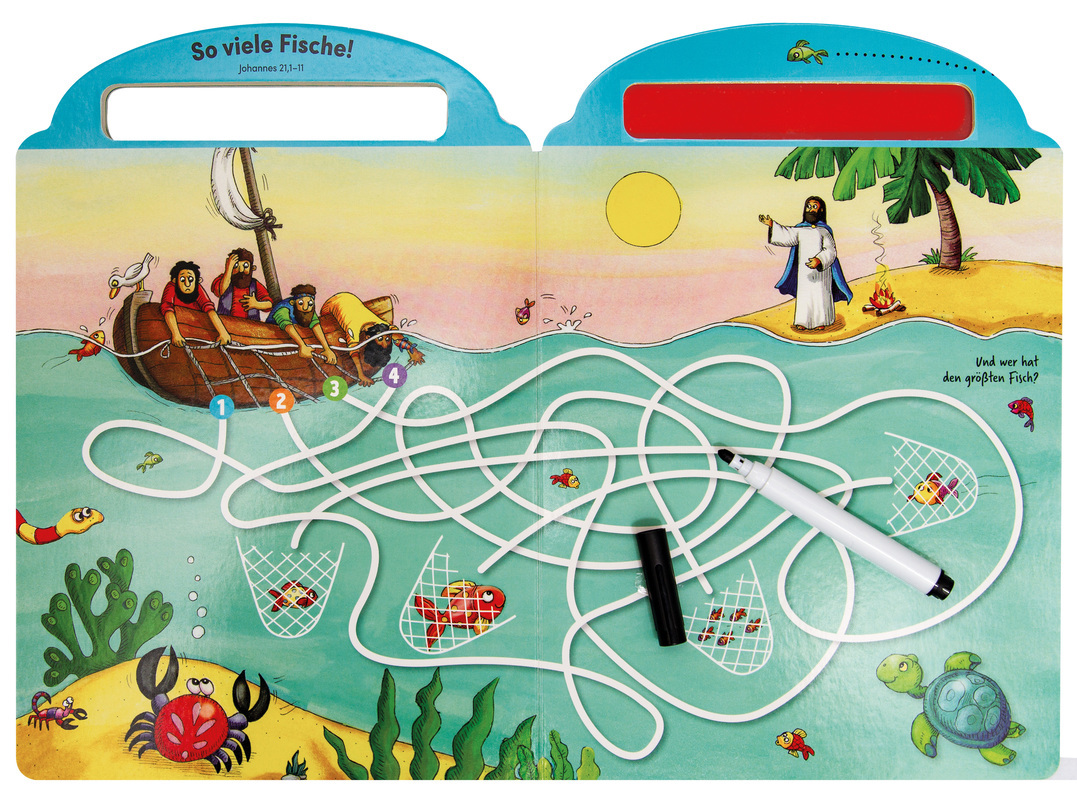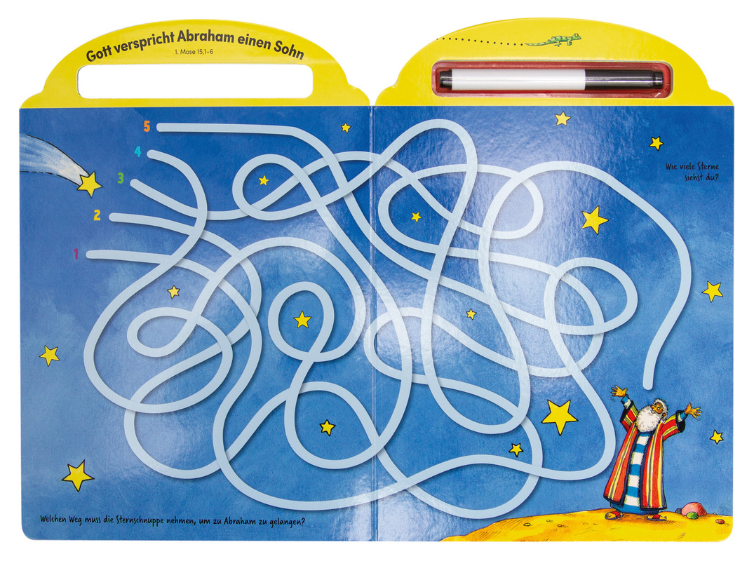 Endloser Labyrinthe-Spaß! Hilf David, den richtigen Weg zu Goliat zu finden! Zeige den Hirten den Weg zu Jesus im Stall! 12 Labyrinthe zu bekannten Bibelgeschichten laden zum Rätseln und Entdecken ein. Und wenn es mal danebengeht: kein Problem! Einfach wegwisc...