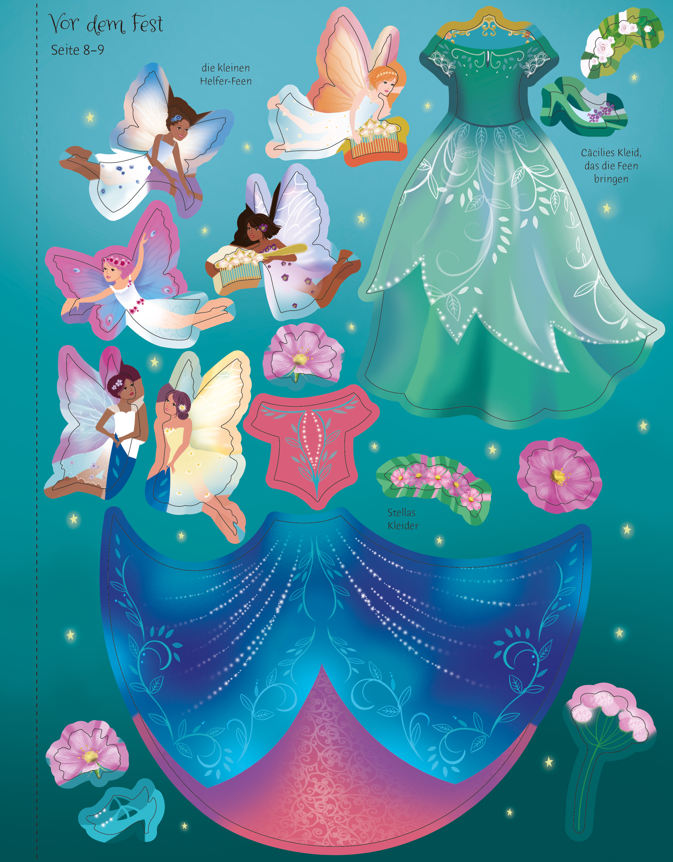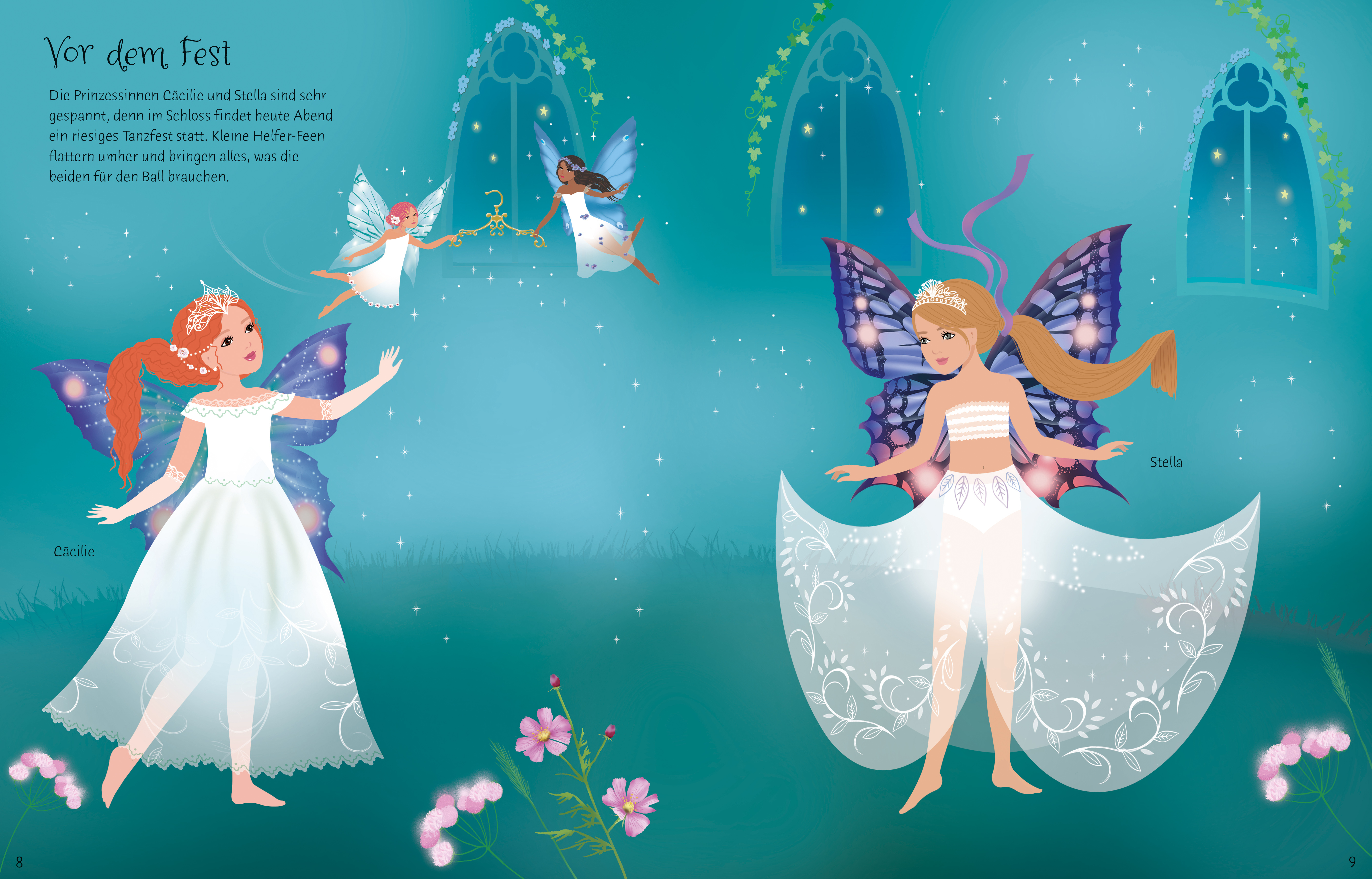 Mit über 300 Stickern viele mit Glitzer kannst du Feen-Prinzessinnen in feine Kleider hüllen. Die graziösen Feen-Prinzessinnen spielen Verstecken im Herbstwald, pflücken Blumen im Rosengarten und streicheln magische Einhörner im Mondschein. Mit über 300 Stick...