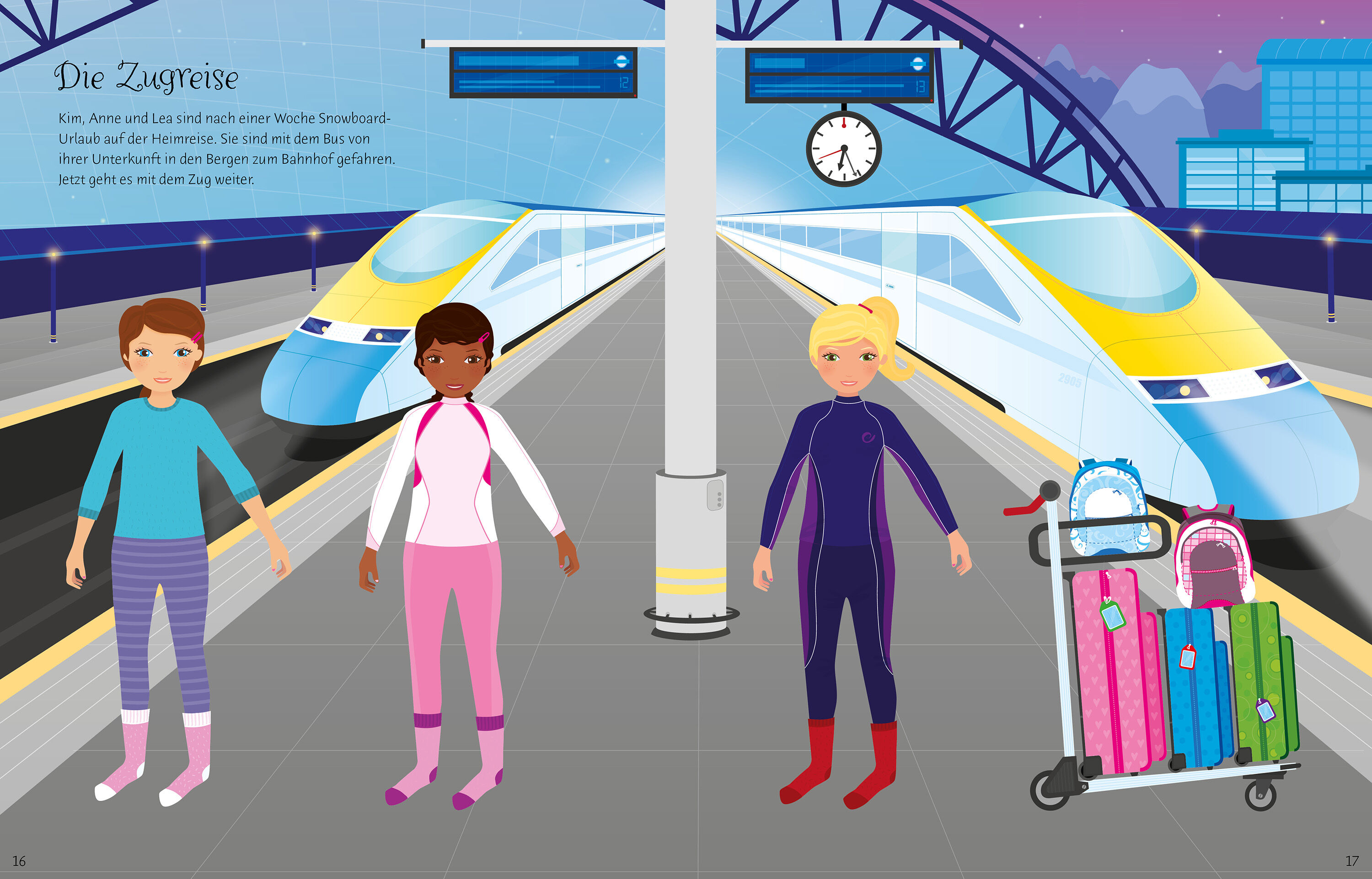 Immer schick auf Reisen! Begleite Kim, Lea und Anne auf ihren Reisen um die Welt. Ob beim Check-in am Flughafen, im Reiturlaub oder beim Camping mit über 250 Anzieh-Stickern sorgst du dafür, dass sie immer und überall perfekt gekleidet sind! • Sonnenhüte,...