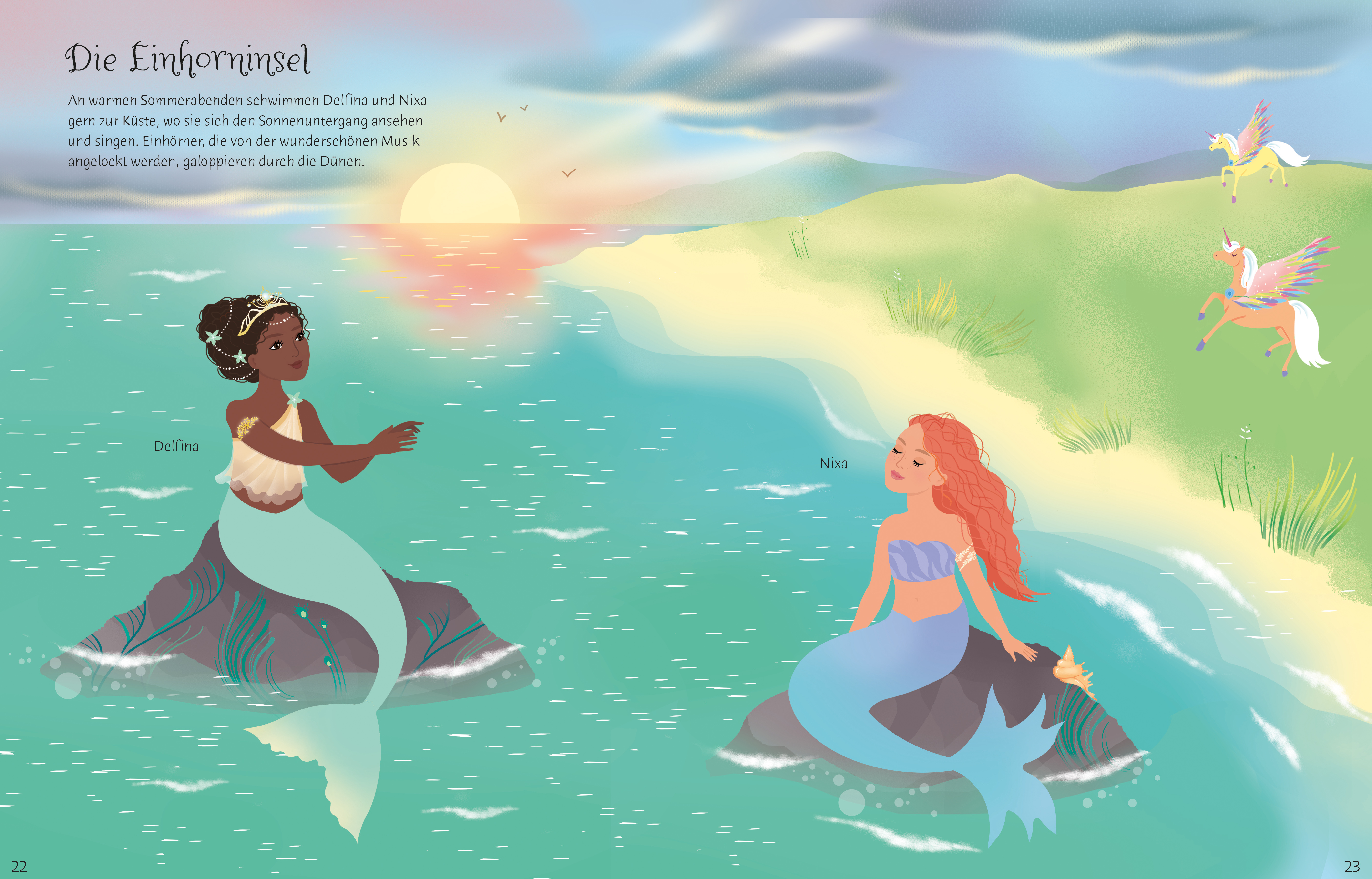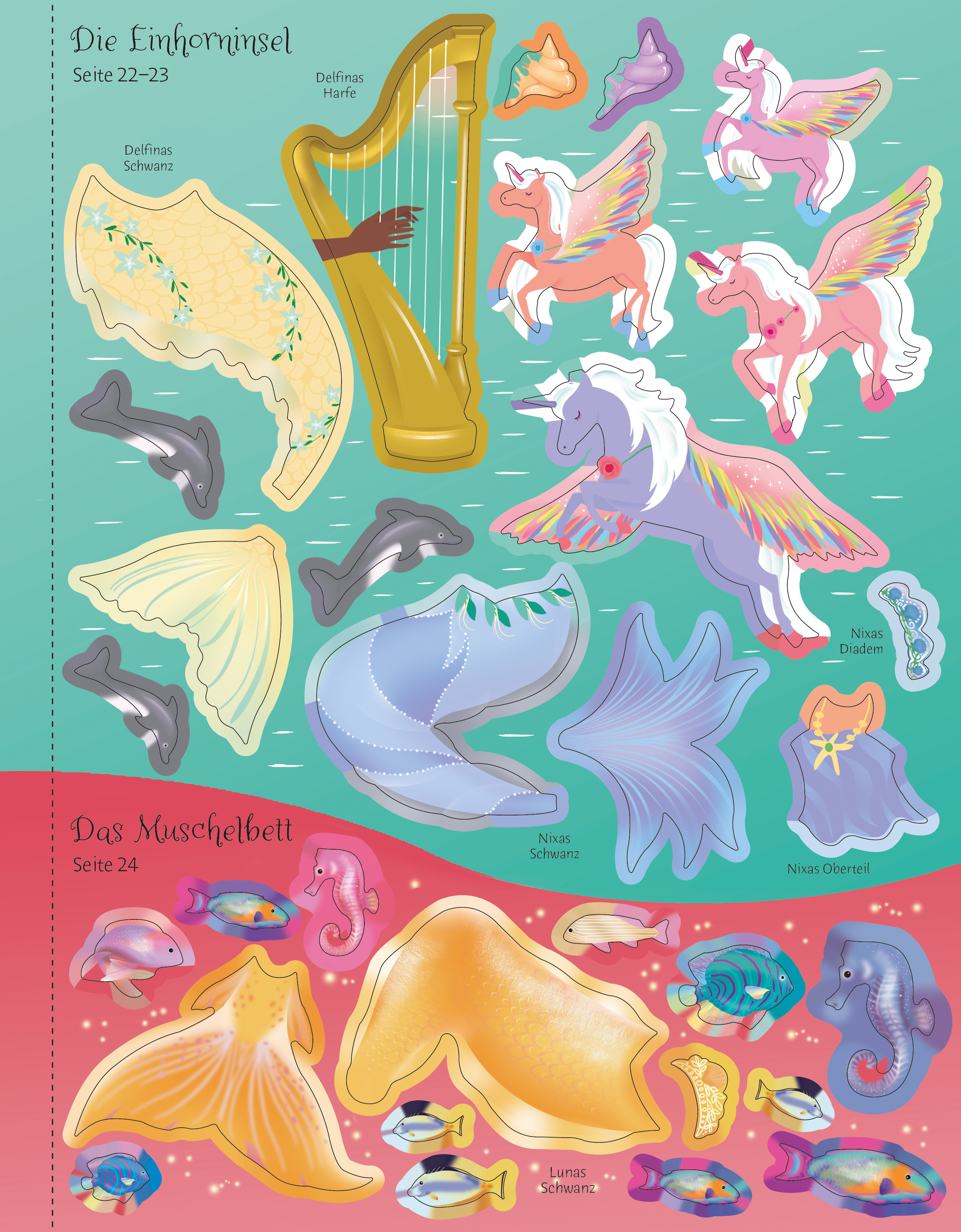 Die zauberhaften Meerjungfrauen und Meermänner entdecken versunkene Schiffe, gehen auf ein Fest, spielen mit den Robben im Eismeer oder singen bei Sonnenuntergang für die magischen Bewohner der Einhorninsel. Mit über 300 Stickern davon viele mit Glitzer kanns...