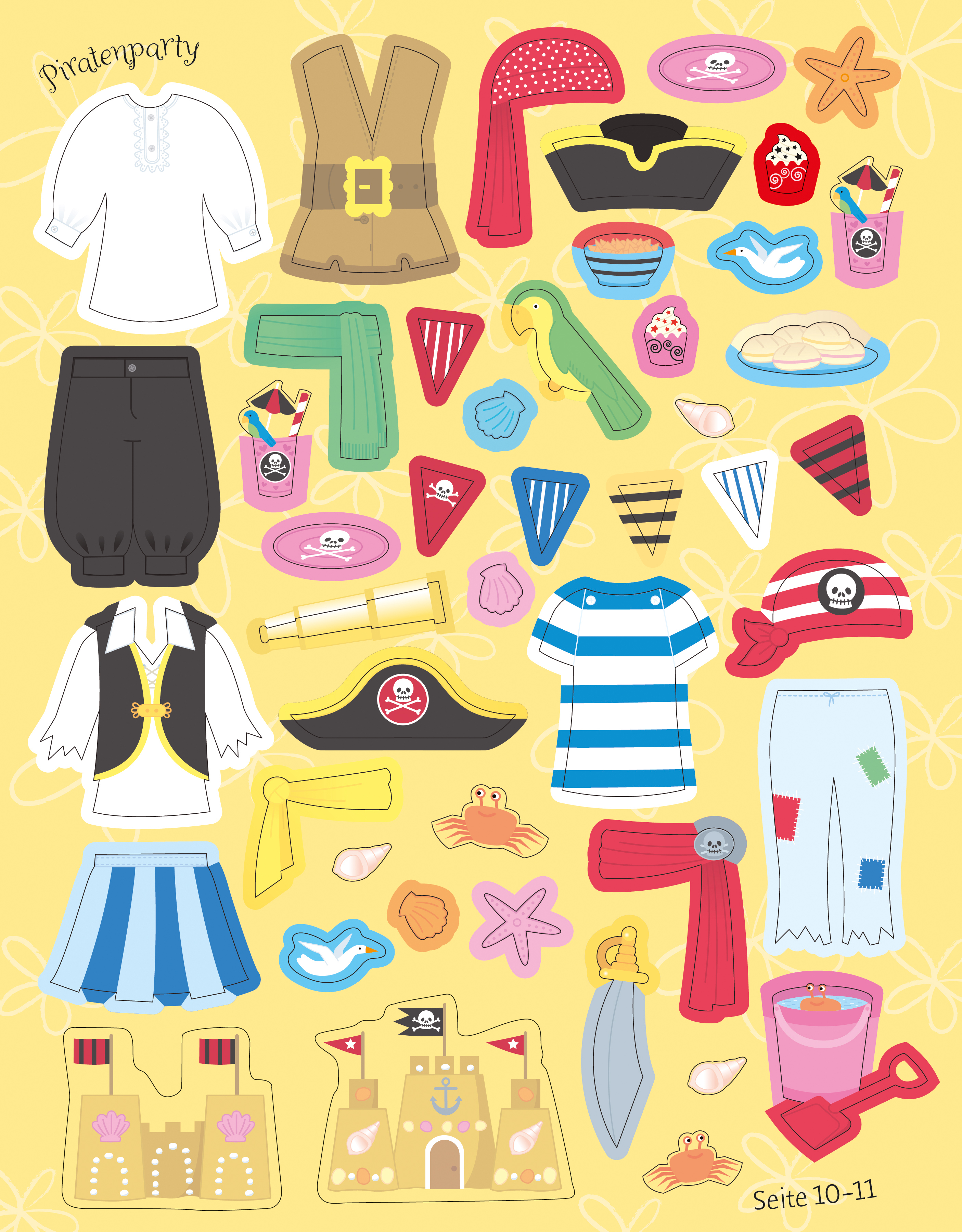 Eine Piratenparty am Strand, ein Picknick im Park oder eine Halloweenfete es gibt ja so viele Gründe, um zu feiern! Hilf beim Anziehen der Partygäste, indem du für jede Party die passende Kleidung auswählst. Unter den 350 Anzieh-Stickern ist bestimmt das Richt...