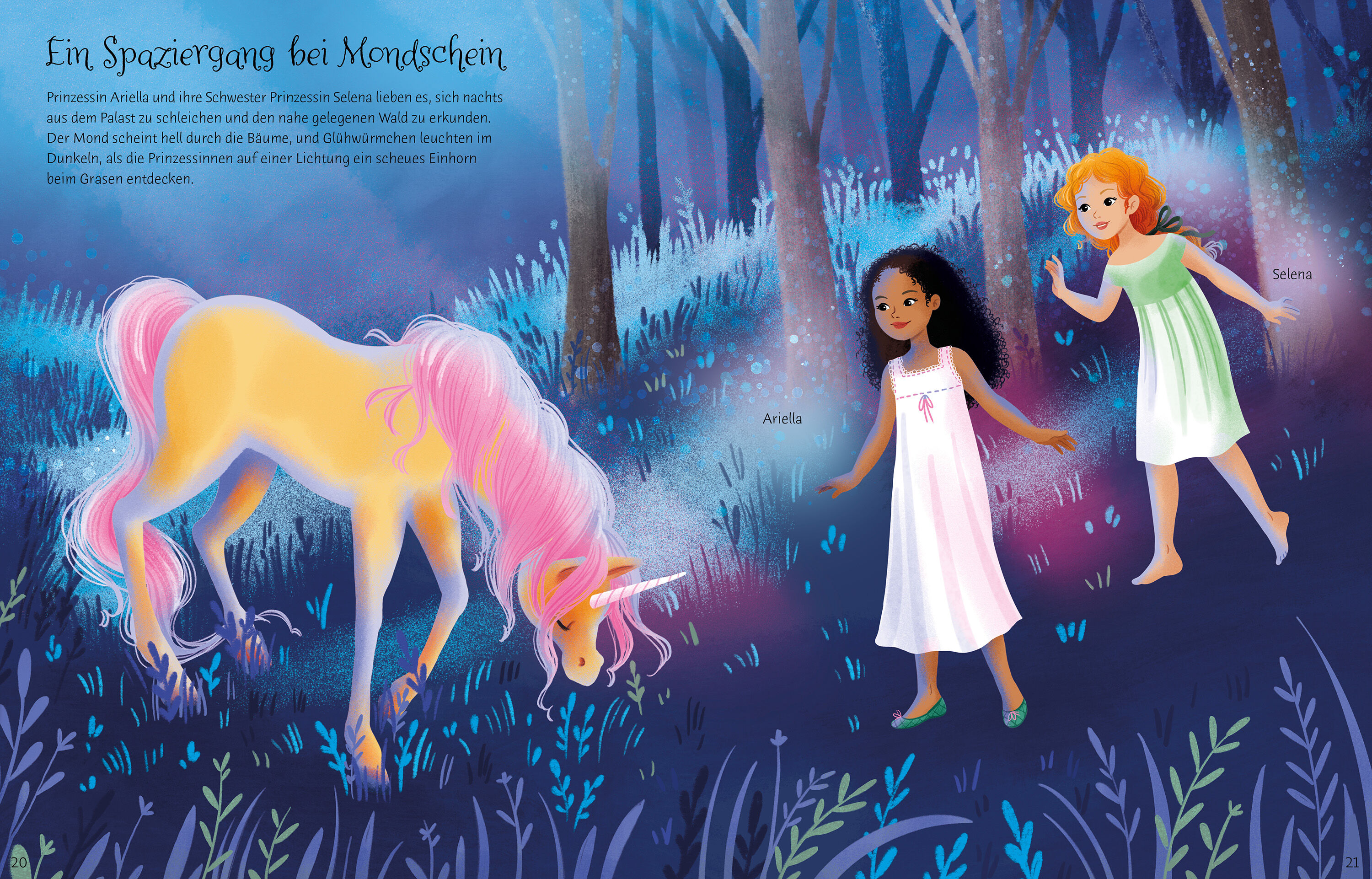 Sei dabei, wenn die Prinzessinnen auf ihren Einhörnern über das Schloss fliegen, am Strand entlanggaloppieren oder ihre Einhörner im Stall striegeln. Mit über 260 Stickern, davon viele mit Glitzer, kannst du die magischen Szenen nach Herzenslust gestalten.