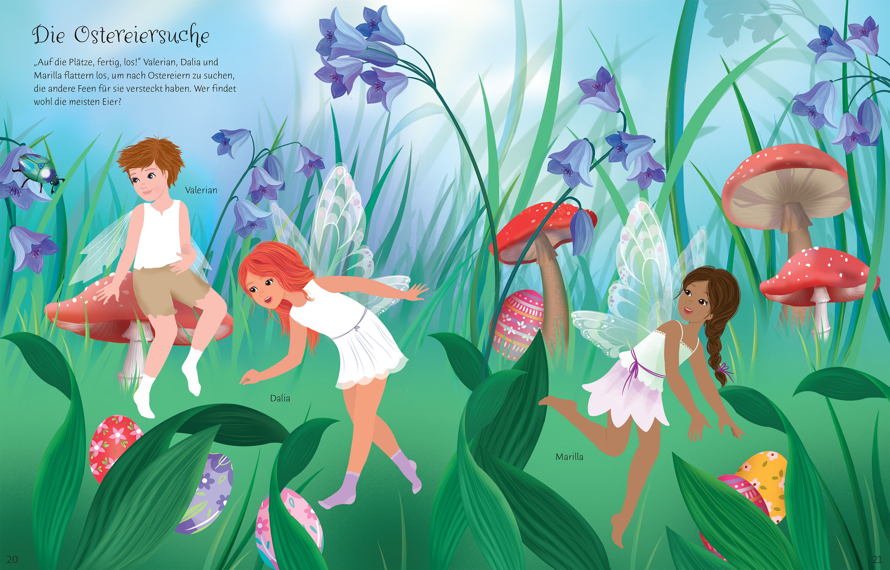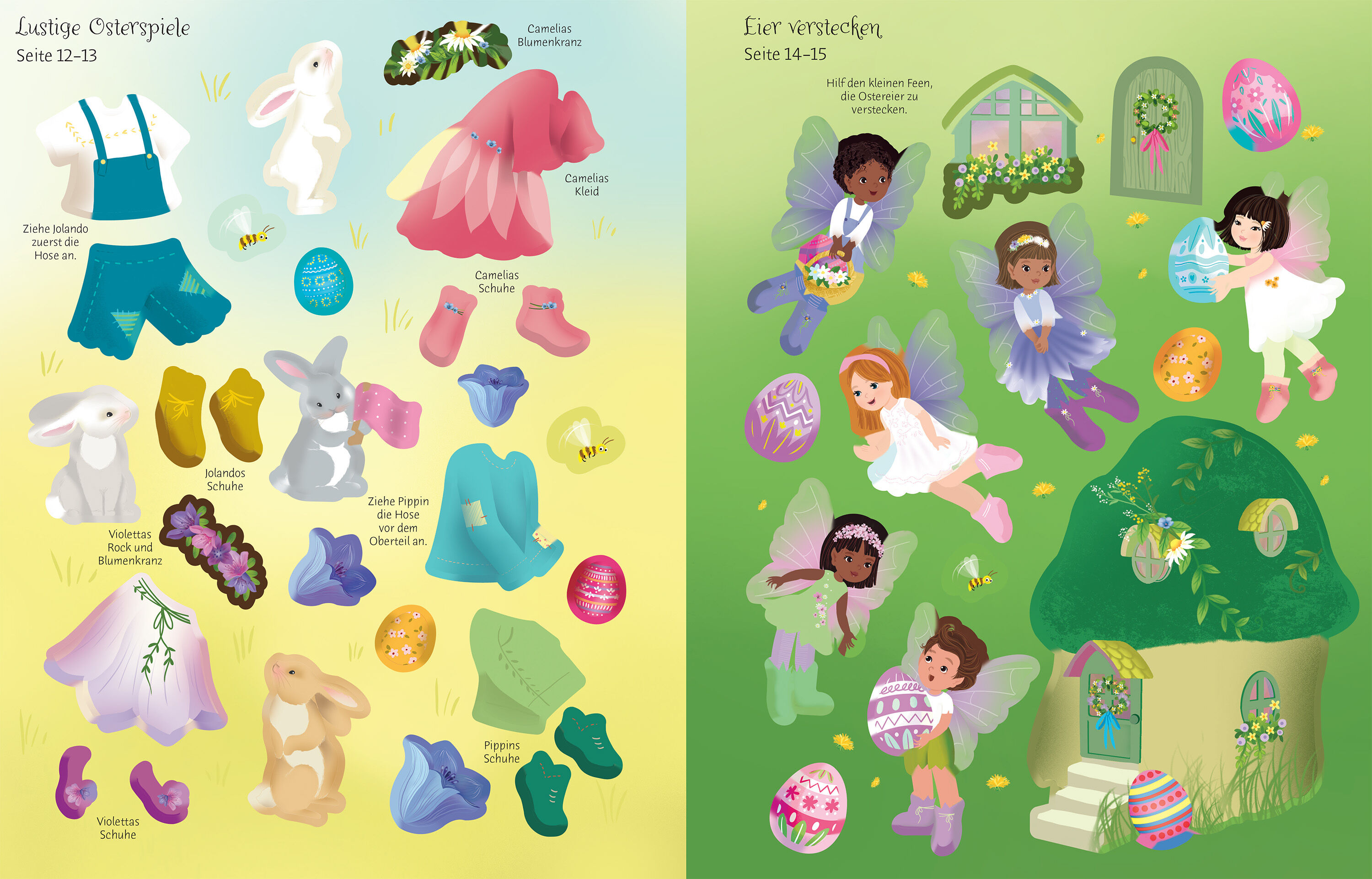 Frühlingszauber im Feenland Sei dabei, wenn die zauberhaften Waldfeen ihr Osterfest vorbereiten. Lass sie Eier färben und suchen, Dekorationen basteln oder auf der Wiese picknicken. Gestalte mit über 240 Stickern, davon viele mit Glitzer, die Welt der Osterfee...