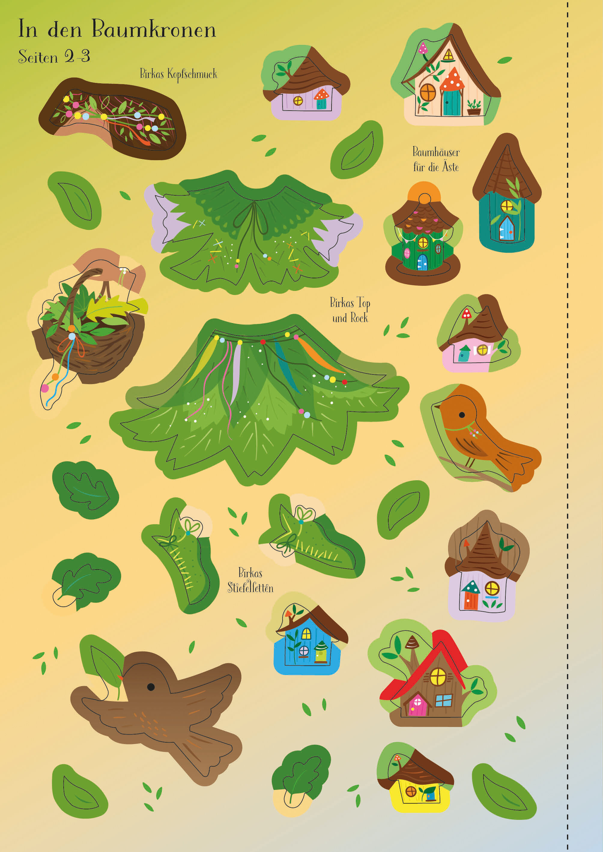 Begleite Birka und die anderen Feen, wenn sie in Baumkronen schaukeln, Vögeln beim Nestbau helfen und bei Mondlicht mit Glühwürmchen fliegen. Mit über 240 wiederablösbaren Stickern kannst du die kleinen Feen für jeden Anlass passend ankleiden. Hoch in den Baum...