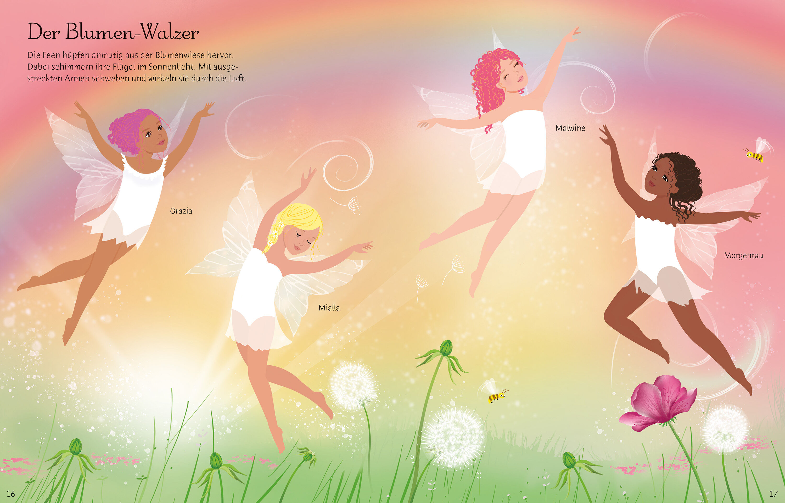 Feenzauber im Doppelband Anmutig tanzen die Feen durch den Wald. Mit über 580 Stickern kannst du die magischen Szenen zum Leben erwecken. Lasse die Feen im Mondschein, über dem See oder auf einer blühenden Blumenwiese Pirouetten drehen und sie zwischen Farnen,...