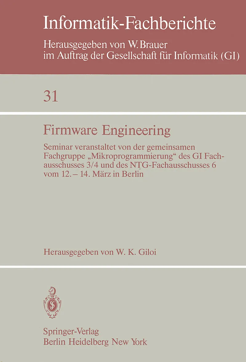 Klappentext Veranstaltet von der gemeinsamen Fachgruppe "Mikroprogrammierung" des GI-Fachausschusses 3/4 und des NTG-Fachausschusses 6 Inhalt Firmware Heute.- Firmware Engineering: An Extensive Update.- Software Engineering Firmware Engineering.- Spezifikation...