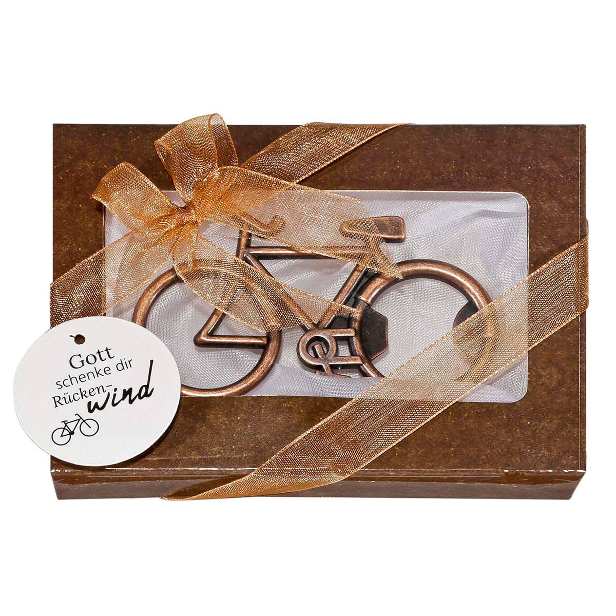 Dieser originelle Design-Flaschenöffner in der Form eines Fahrrades wird jeden passionierten Radfahrer oder Radsportler zum Schmunzeln bringen. In einer schönen Geschenkverpackung mit Schleifenband und Grußkärtchen befindlich, auf dem der beliebte Segenswunsch...
