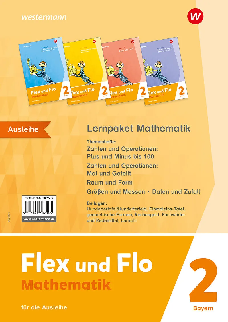 Das Flex und Flo Lernpaket Mathematik 2 (für die Ausleihe) enthält die Themenhefte Zahlen und Operationen: Plus und Minus bis 100, Zahlen und Operationen: Mal und Geteilt, Raum und Form 2, Größen und Messen - Daten und Zufall 2 und folgende Beilagen: Hunderte...
