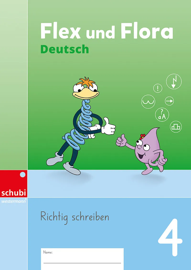 Flex und Flora 4 bietet insgesamt vier kompetenzorientiert aufgebaute Hefte an, die sich je einem Bereich widmen: Sprache untersuchen, Richtig schreiben, Texte schreiben und Lesen . Die Hefte geben keine Sachthemen vor. Sie können miteinander verknüpft sowie unabhängig voneinander eingesetzt werden.