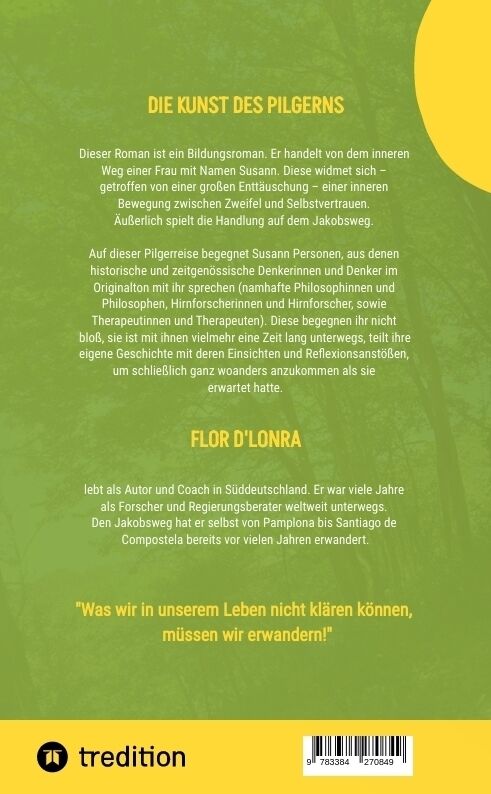 Dieser Roman ist ein Bildungsroman. Er handelt von dem inneren Weg einer Frau mit Namen Susann. Diese widmet sich getroffen von einer großen Enttäuschung einer inneren Bewegung zwischen Zweifel und Selbstvertrauen zu. Äußerlich ist die Handlung auf dem Jakobsw...