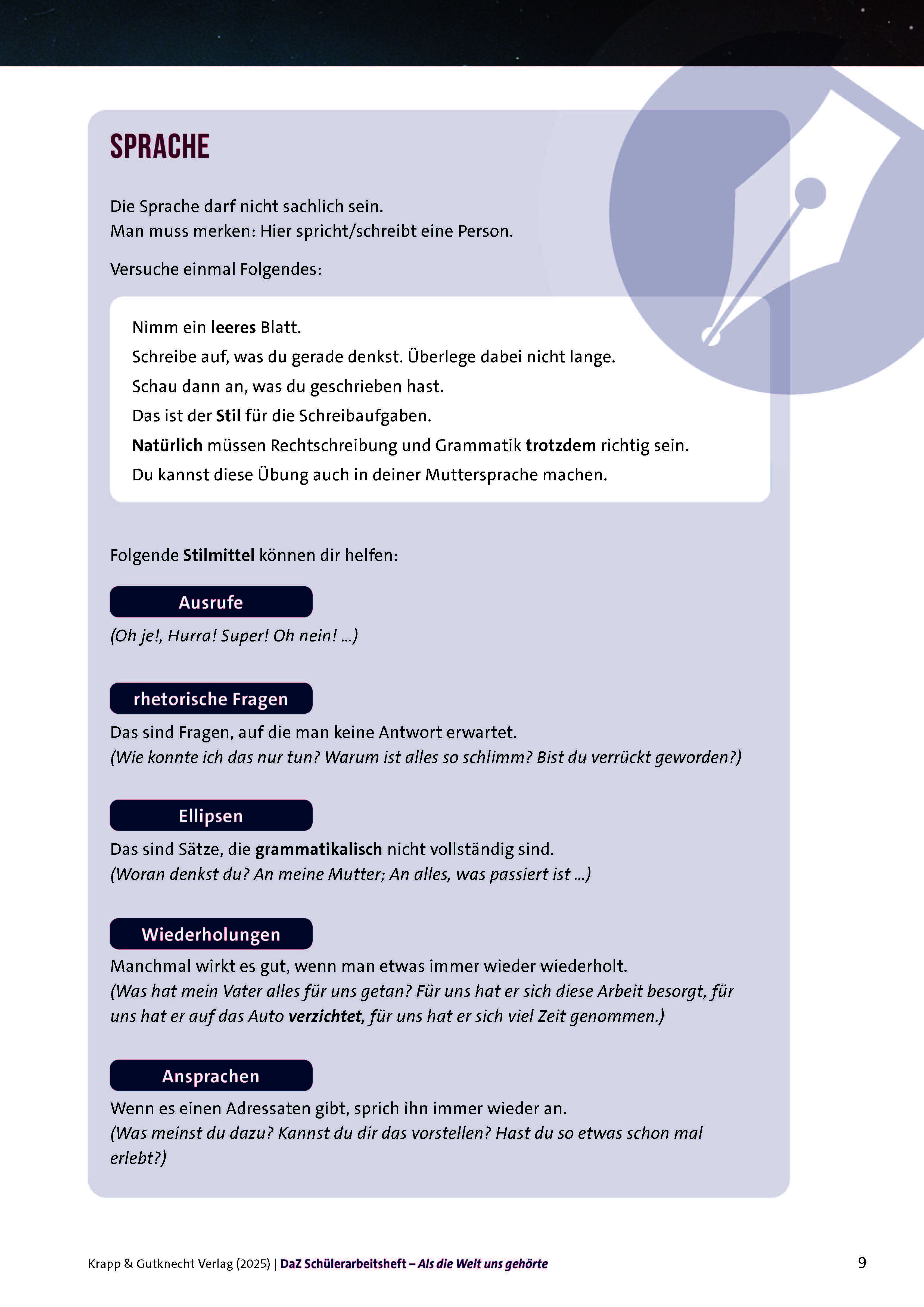 Als die Welt uns gehörte Schülerarbeitsheft für Deutsch als Zweitsprache