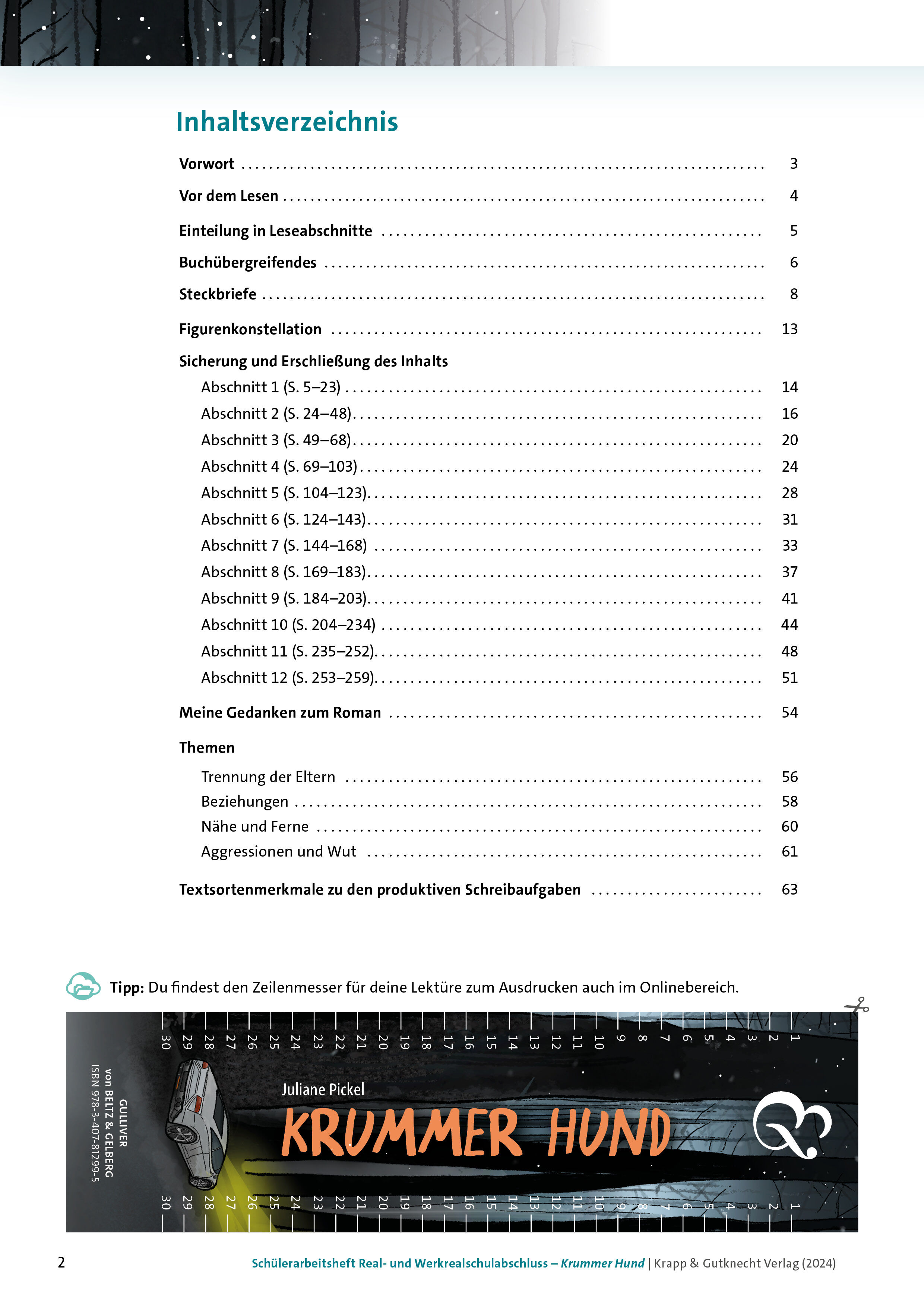Unser Schülerarbeitsheft begleitet bei der Erschließung der Ganzschrift Krummer Hund von Juliane Pickel und deren Themen. Das Unterrichtsmaterial mit abwechslungsreichen Aufgaben, Arbeitsblättern, Hilfestellungen und einer schülernahe Gestaltung mit Illustrat...