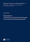 Die Arbeit befasst sich dogmatisch mit dem Problem individueller Aufsichtsratsvergütungen. Daneben erfolgt ein Rechtsvergleich zur Vergütung der US-amerikanischen outside directors. Interdisziplinär werden Erkenntnisse aus den wirtschaftswissenschaftlichen und...