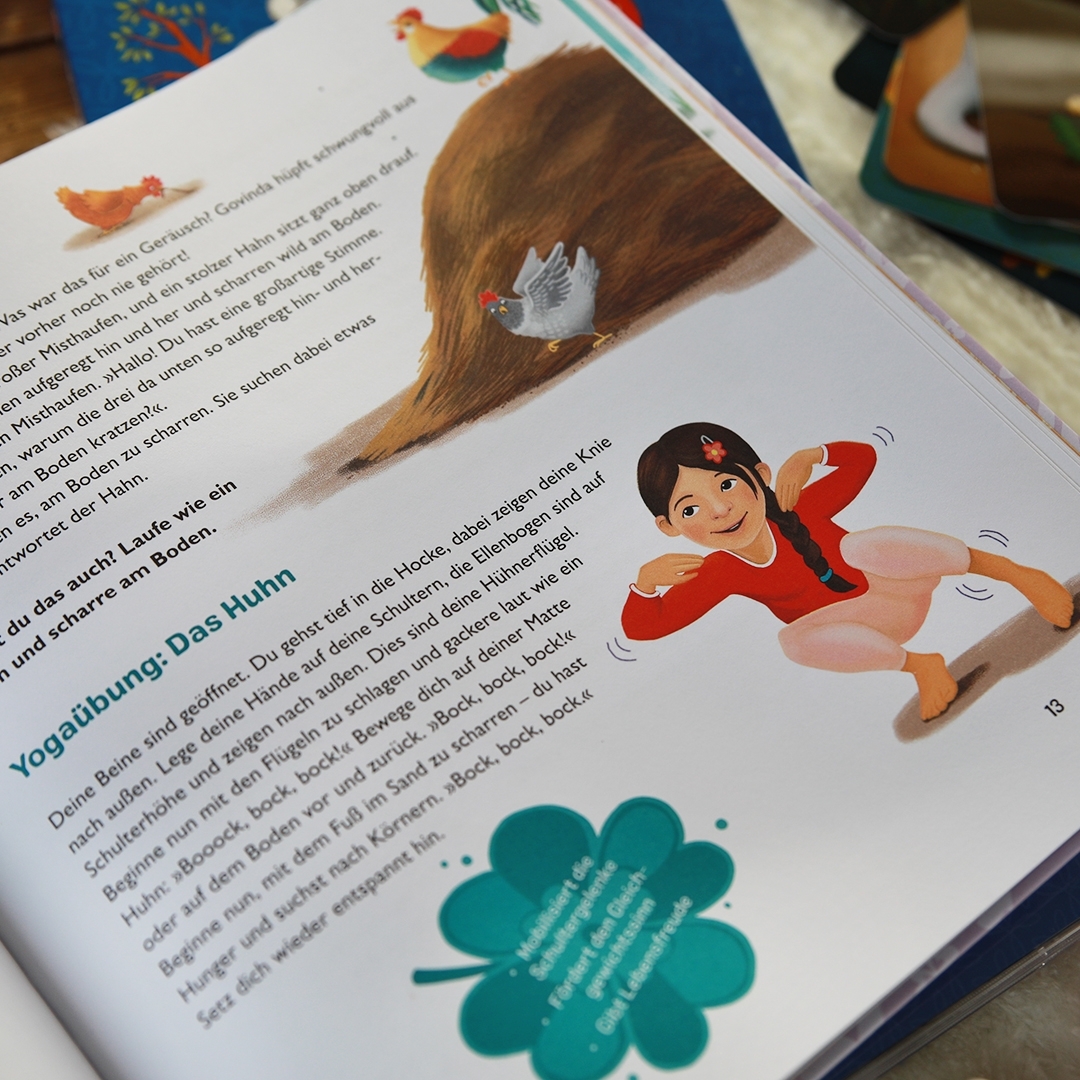 Mach mit den Kleinsten eine Fantasiereise auf den Bauernhof und ganz nebenbei Yoga. Dieses Kinderyoga-Bilderbuch mit Hühnern und Ferkeln ist ein schwungvoller und fröhlicher Einstieg für kleine Kinder in die Welt des Yoga. Eine lustige Geschichte führt durch die praxiserprobten Yoga- und Achtsamkeitsübungen. Ihr braucht weder Hilfsmittel noch Vorkenntnisse, um mit diesem Familien-Ritual Stress abzubauen, zur Ruhe zu kommen und eure Stärke zu spüren kurz in Family Flow zu kommen. Entwickelt hat dieses Bilderbuch mit Yoga für Kinder der bekannte und erfahrene Yogalehrer Florian Sprater, der in einigen Schulen und Kitas mit seinen Entspannungsübungen bereits fester Bestandteil des Lehrplans ist. Und vielleicht ja auch schon bald in eurem Familien- oder Kindergarten-Alltag.