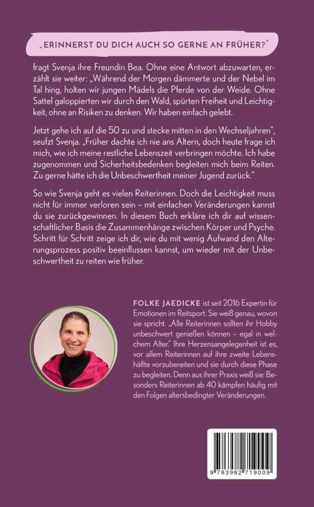 Der praxisnahe Ratgeber für alle Reiterinnen ab 40, die wieder voller Freude und Vertrauen reiten wollen!Fühlst du dich beim Reiten manchmal unsicher - obwohl du dein Pferd gut kennst?Hast du das Gefühl, dass deine Leichtigkeit im Sattel mit den Jahren schwind...