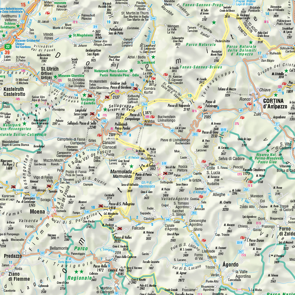 Motorradkarten-Set Italien Nord, bestehend aus 8 laminierten Karten, die im übersichtlichen Tourenmaßstab 1:250.000 die Regioenen Südtirol, Trentino, Gardasee, Piemont, Ligurien, Toskana, Venetien und Friaul abdecken. In einer praktischen Umtasche mit Reißvers...