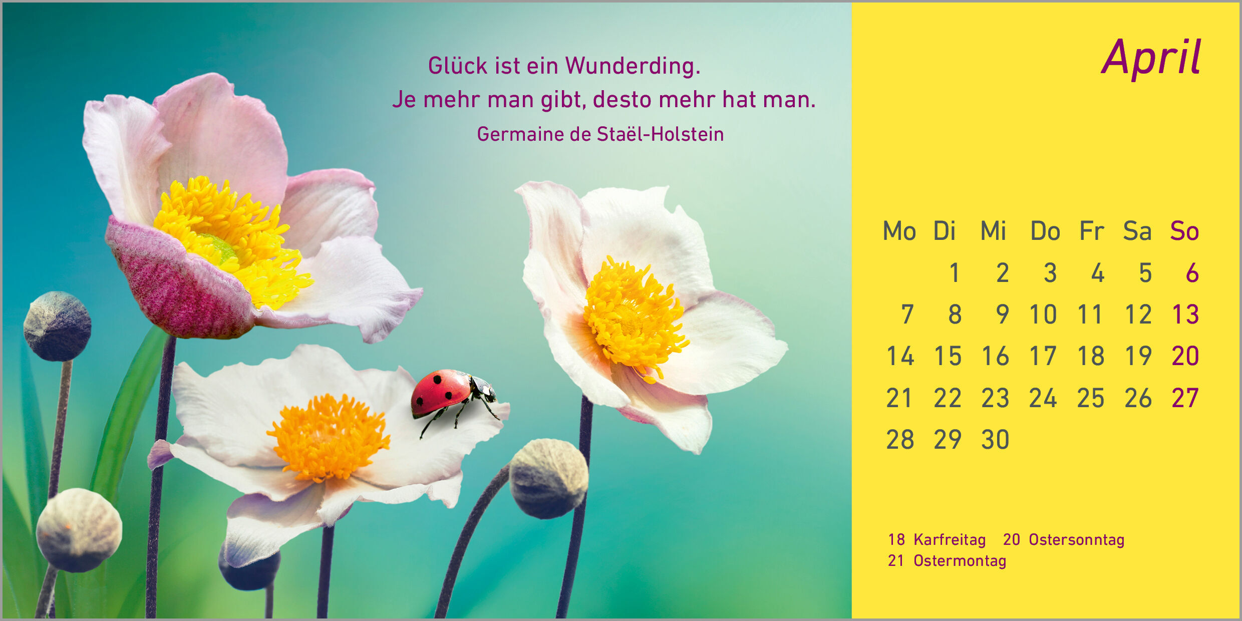 Zu Hause die Seele baumeln lassen: dekorativer Aufstellkalender Zwischen den Zeilen liegen Schätze für das Leben! • Aufstellkalender: 12 Kalenderblätter mit jeweils einem Zitat und einer ausdrucksstarken Naturbetrachtung als Fotominiatur• Inspirieren...