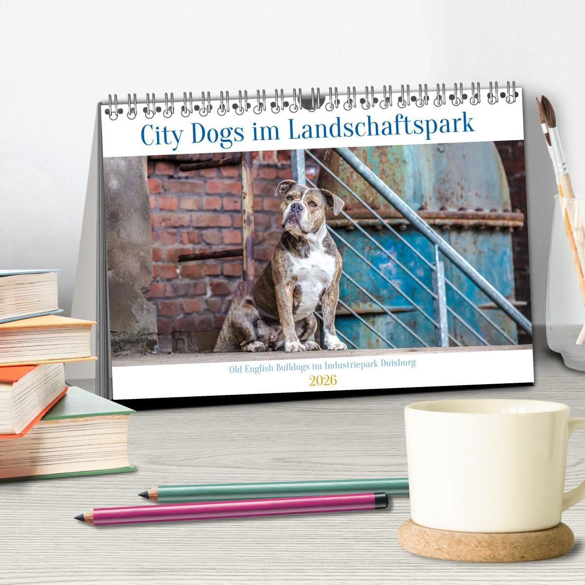 City Dogs im Landschaftspark (Tischkalender 2026 DIN A5 quer), CALVENDO Monatskalender