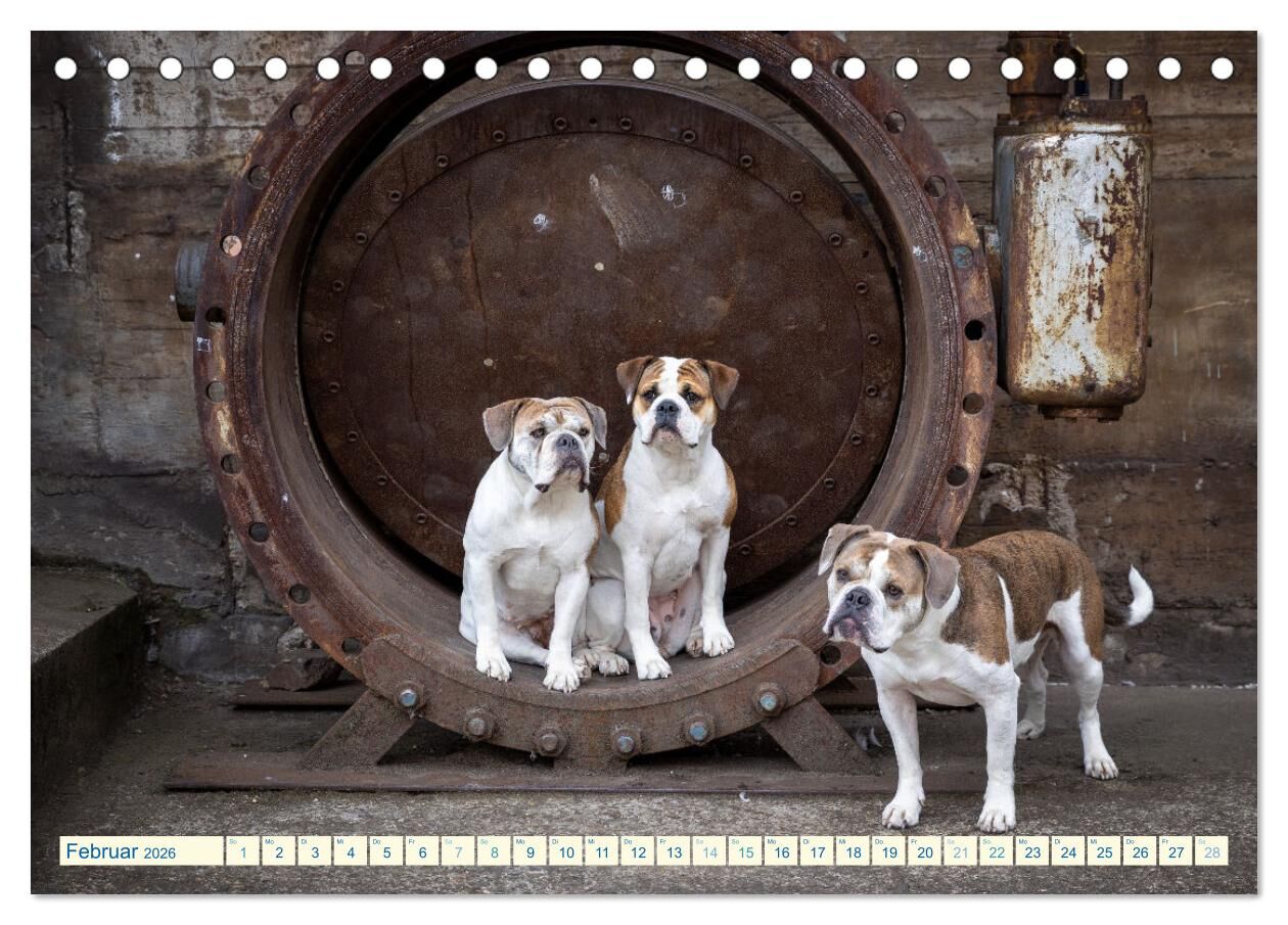 Kuschelige Vierbeiner vor industrieller Kulisse fotografiert. Old English Bulldogs treffen auf Industriekultur. Ausdrucksvolle Fotos von Rassehunden vor beeindruckender Kulisse.