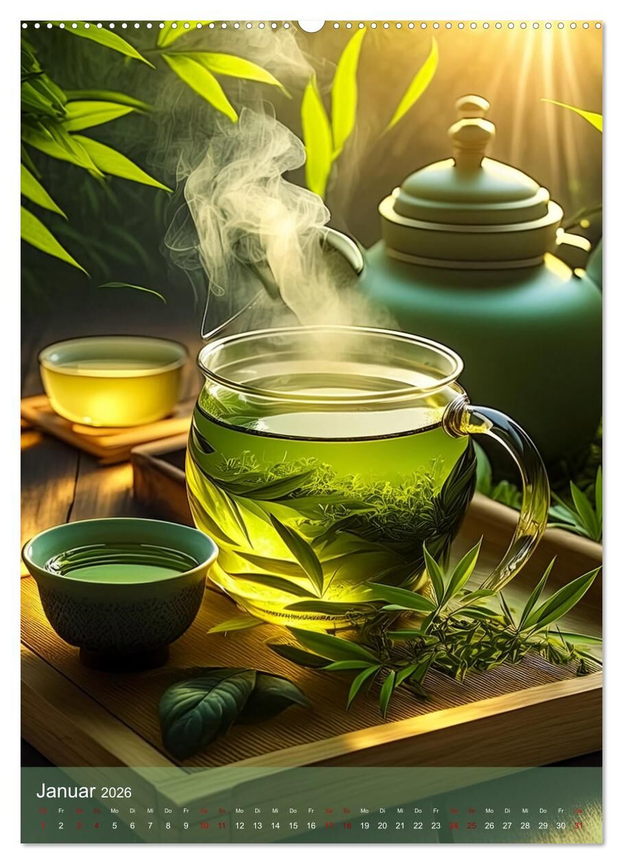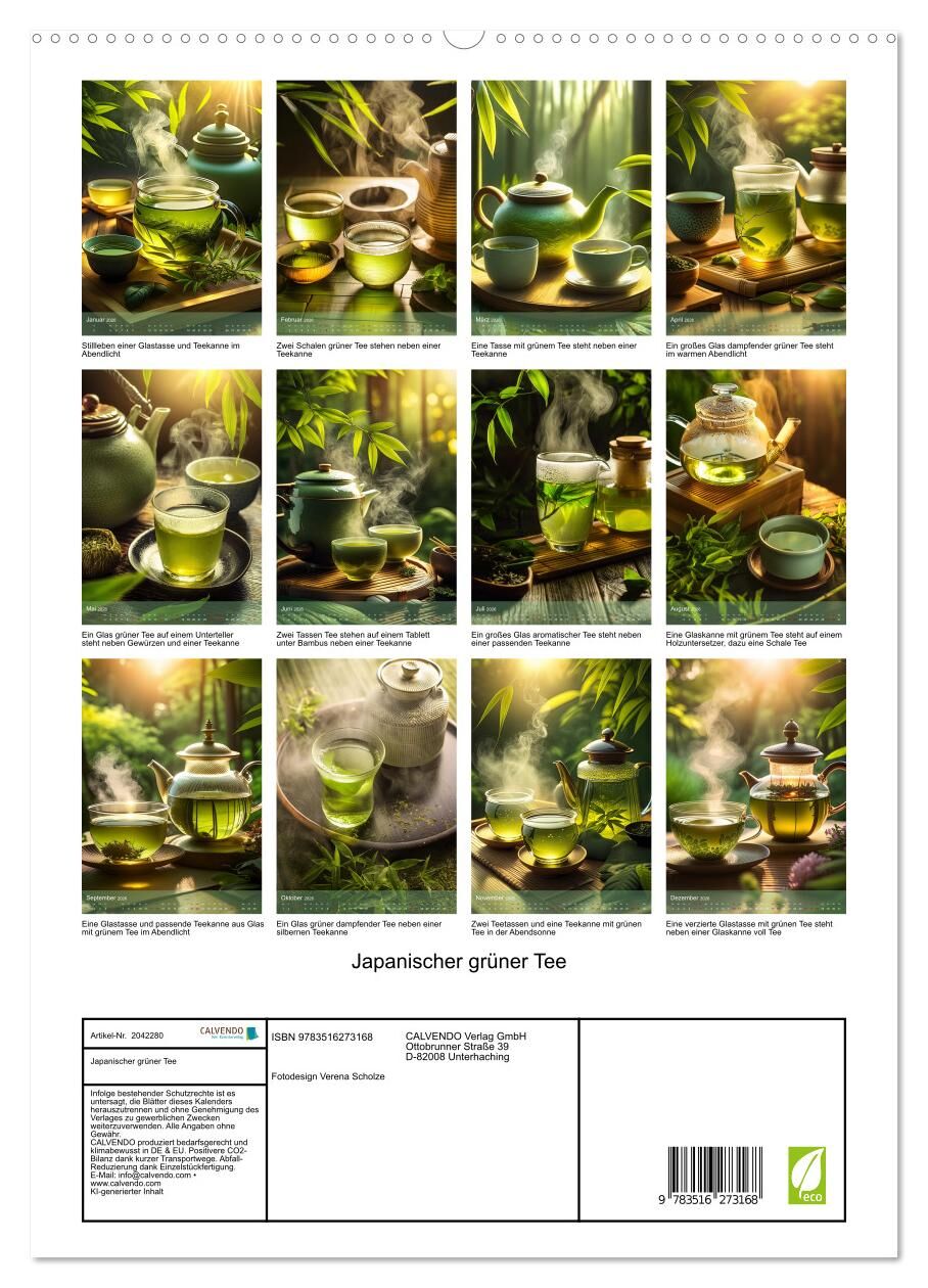 Ein stilvoller Kalender, der die Eleganz und Gesundheit von japanischem grünem Tee in den Fokus rückt. Die durch KI entstandenen Bilder verstärken beim betrachten das Gefühl von Ruhe und Gelassenheit, das mit dem Genuss von grünem Tee einhergeht. Die Bilder st...