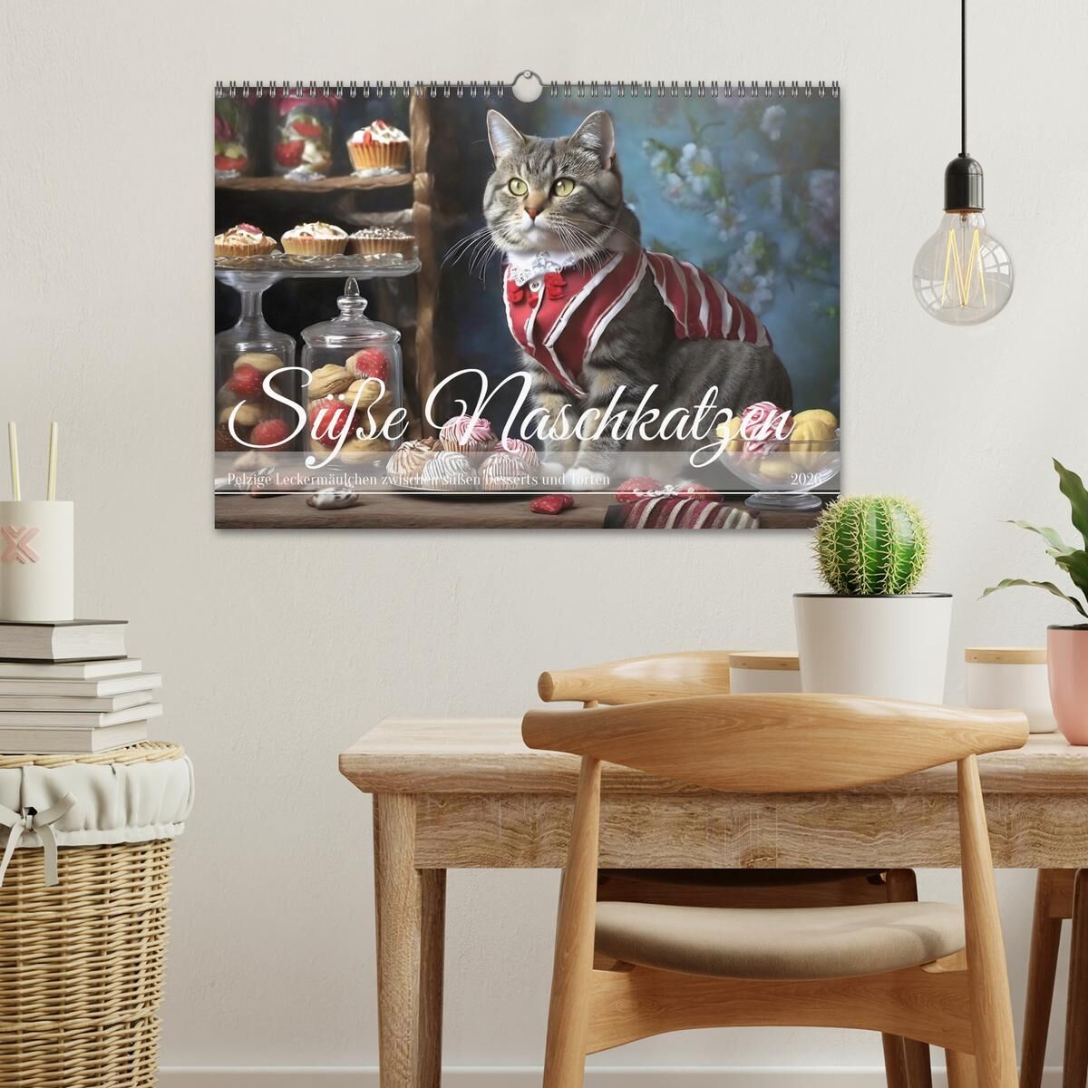 Süße Naschkatzen - Pelzige Leckermäulchen zwischen süßen Desserts und Torten (Wandkalender 2026 DIN A3 quer), CALVENDO Monatskalender