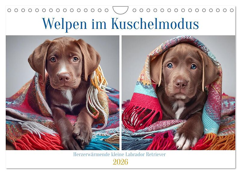 Tauche ein in die Welt der kleinen Labrador Retriever-Welpen. Dieser Kalender begleitet dich durch die Jahreszeiten mit zauberhaften Bildern, die dein Herz schmelzen lassen. Jeder Monat zeigt die süßen Fellknäuel in ihren kuscheligen Decken, während sie sich a...