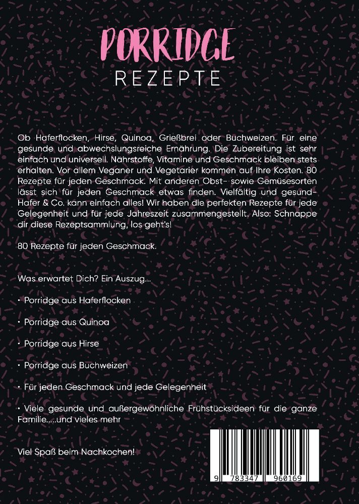 PORRIDGE REZEPTE- 80 Rezepte. Worauf kannst Du Dich freuen? -Eine genaue Anleitung -Jede Menge Tipps und Tricks -Die besten und beliebtesten Rezepte -VIELFALT & KREATIVITÄT für Jedermann -Gesund und abwechslungsreich.. Für wen ist dieses Buch geeignet? -Ho...