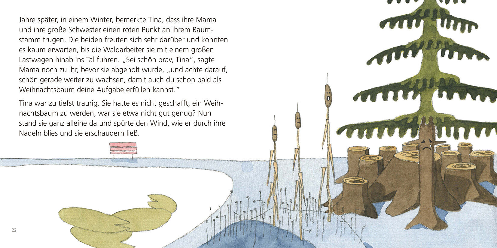 Tina Tannenbaum liebt den Wald, seine tierischen Bewohner und ihren Freund Kasimir, die krumme Tanne. Doch als eines Tages die Waldarbeiter kommen und Mutter und Schwester für ihr neues Leben als Weihnachtsbaum mitnehmen, wirft sie das völlig aus der Bahn. Der...