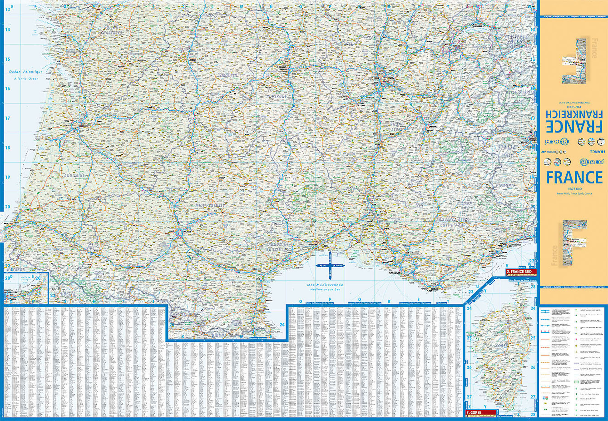 Our laminated and folded Borch Map of France in the 9th edition contains: France North 1:875 000, France South 1:875 000, Corsica 1: 875 000 and an administrative map of France with time zones. Borch Maps contain a multitude of interesting and useful informati...