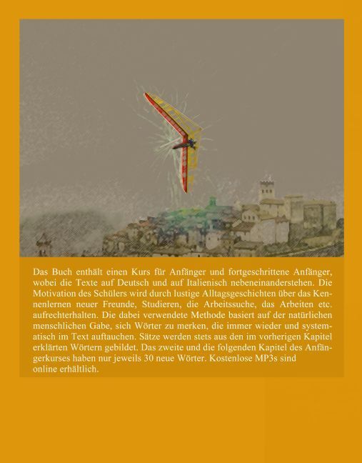 Das Buch enthält einen Kurs für Anfänger und fortgeschrittene Anfänger, wobei die Texte auf Deutsch und auf Italienisch nebeneinanderstehen. Die Motivation des Schülers wird durch lustige Alltagsgeschichten über das Kennenlernen neuer Freunde, Studieren, die A...