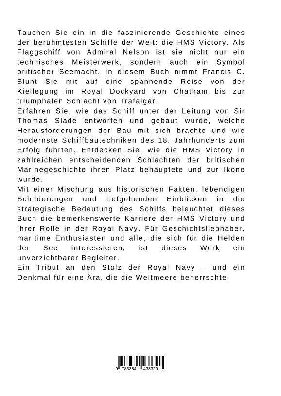 Tauchen Sie ein in die faszinierende Geschichte eines der berühmtesten Schiffe der Welt: die HMS Victory. Als Flaggschiff von Admiral Nelson ist sie nicht nur ein technisches Meisterwerk, sondern auch ein Symbol britischer Seemacht. In diesem Buch nimmt Franci...
