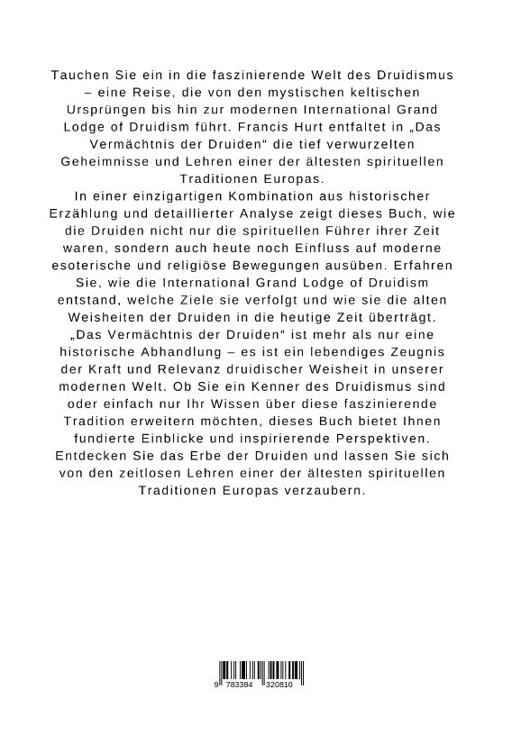 Tauchen Sie ein in die faszinierende Welt des Druidismus eine Reise, die von den mystischen keltischen Ursprüngen bis hin zur modernen International Grand Lodge of Druidism führt. Francis Hurt entfaltet in Das Vermächtnis der Druiden die tief verwurzelten Gehe...